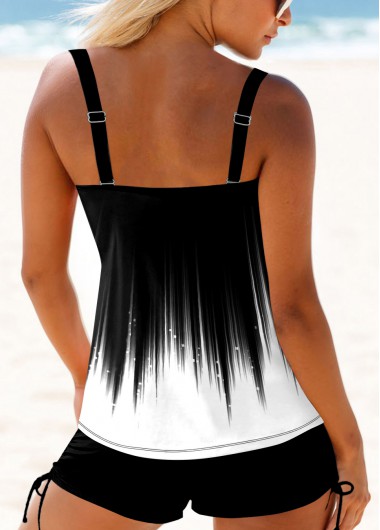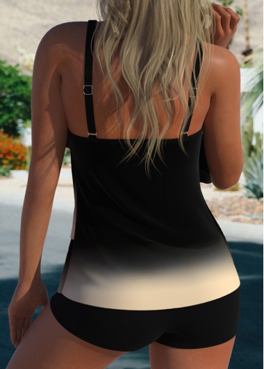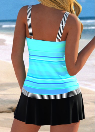 Double Straps Ombre Patchwork Cyan Tankini Set