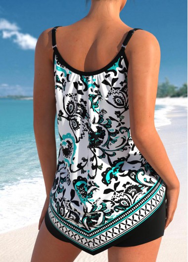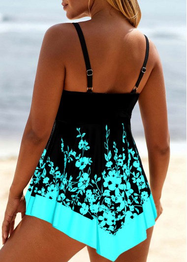 Dazzle Colorful Print Lightweight Cyan Tankini Set