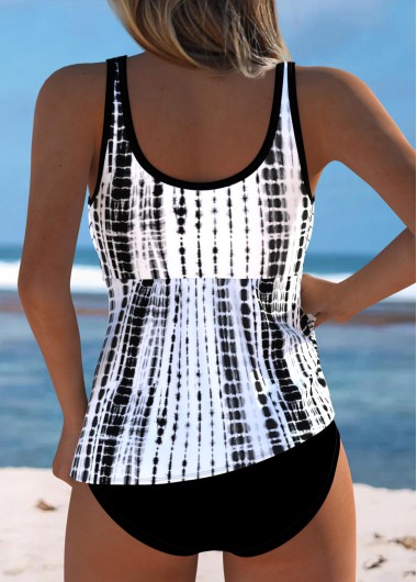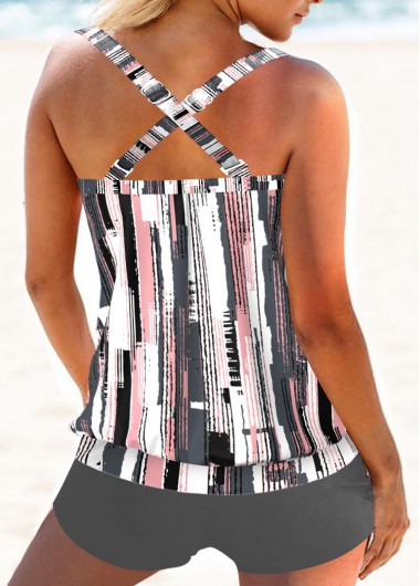 Chevron Print Rainbow Color Wide Strap Tankini Set
