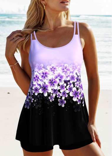 Dazzle Colorful Print Surplice Multi Color Tankini Set