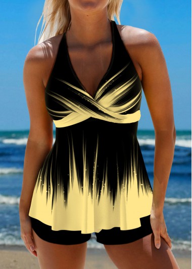 Tie Back Ombre Surplice Light Yellow Tankini Set