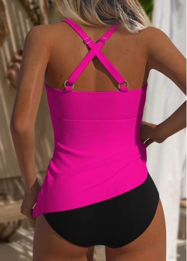 Ombre Asymmetry Neon Rose Red Tankini Set