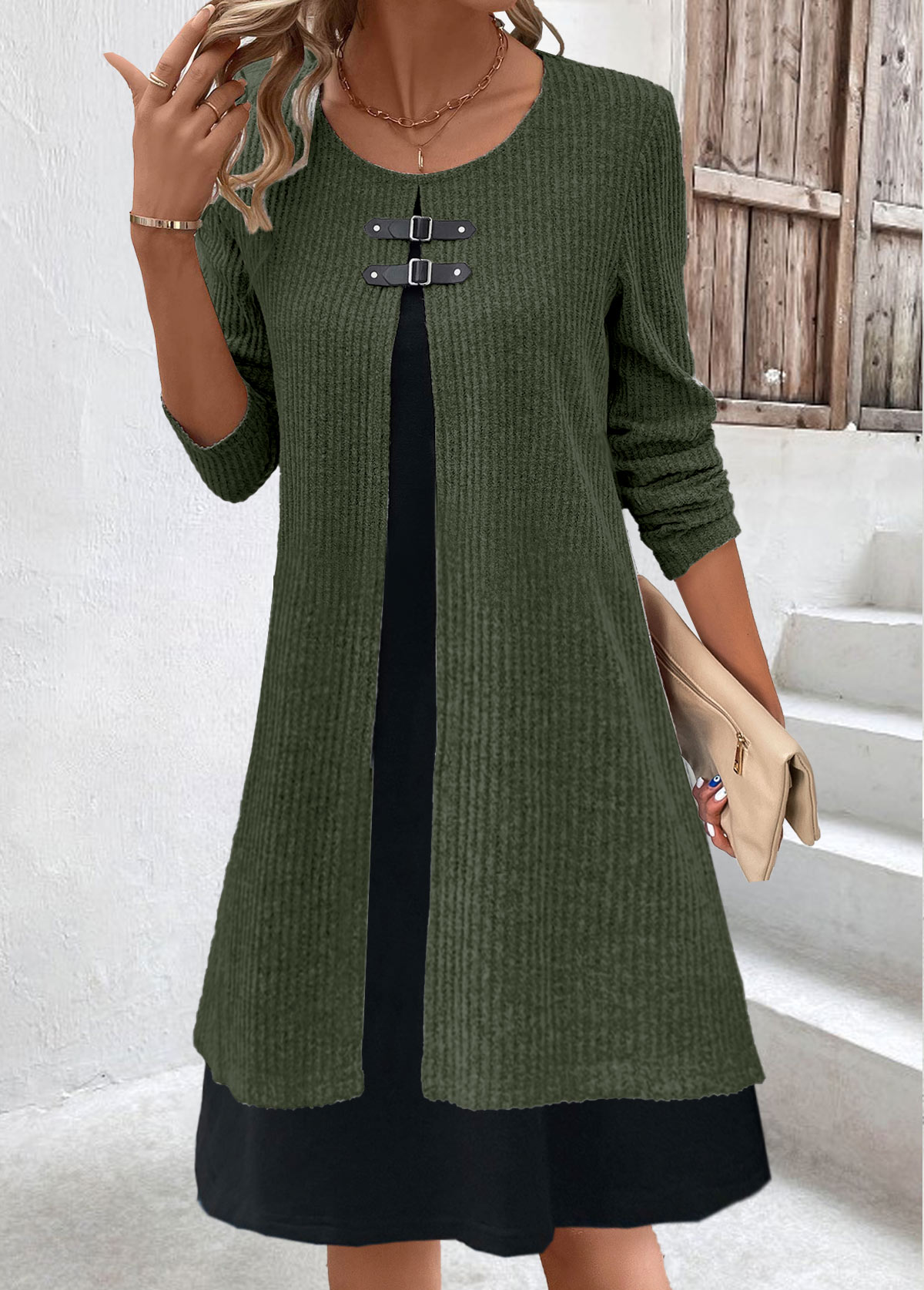 A Line Fake 2in1 Olive Green Dress Rosewe®