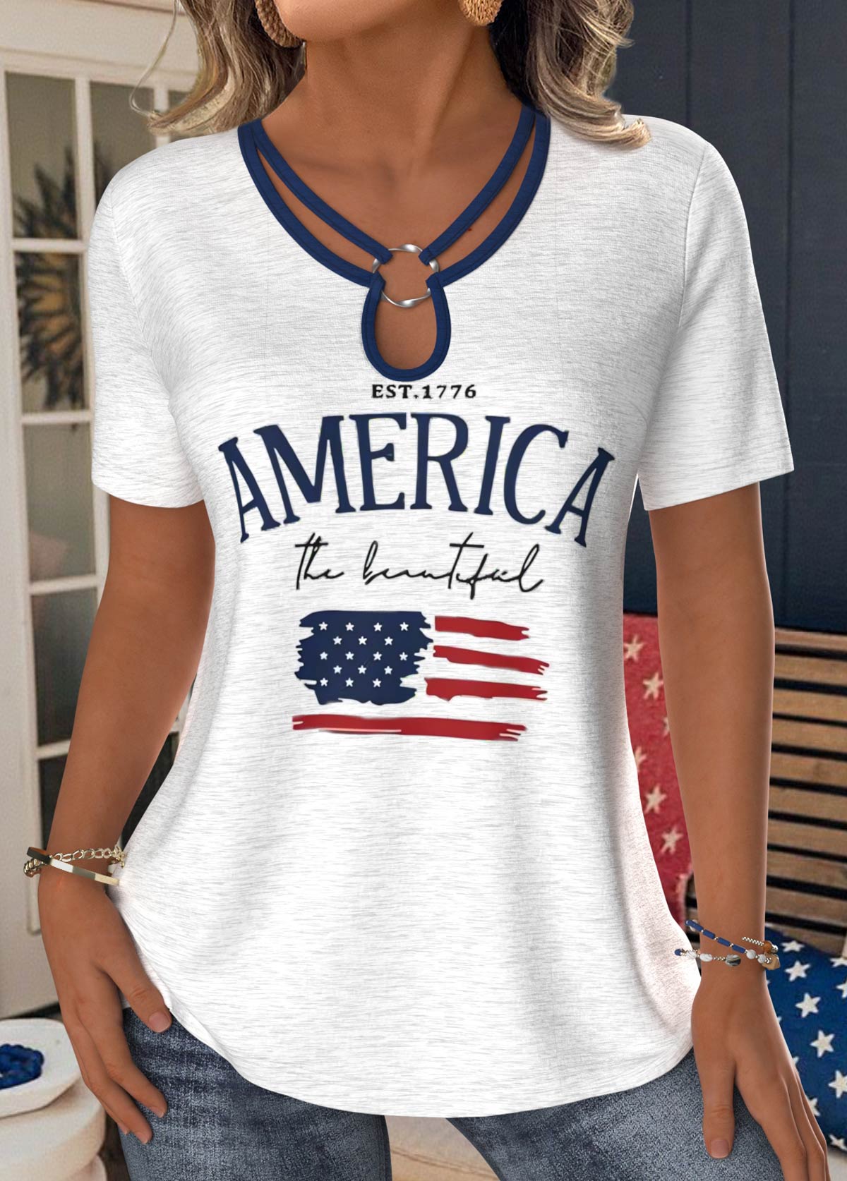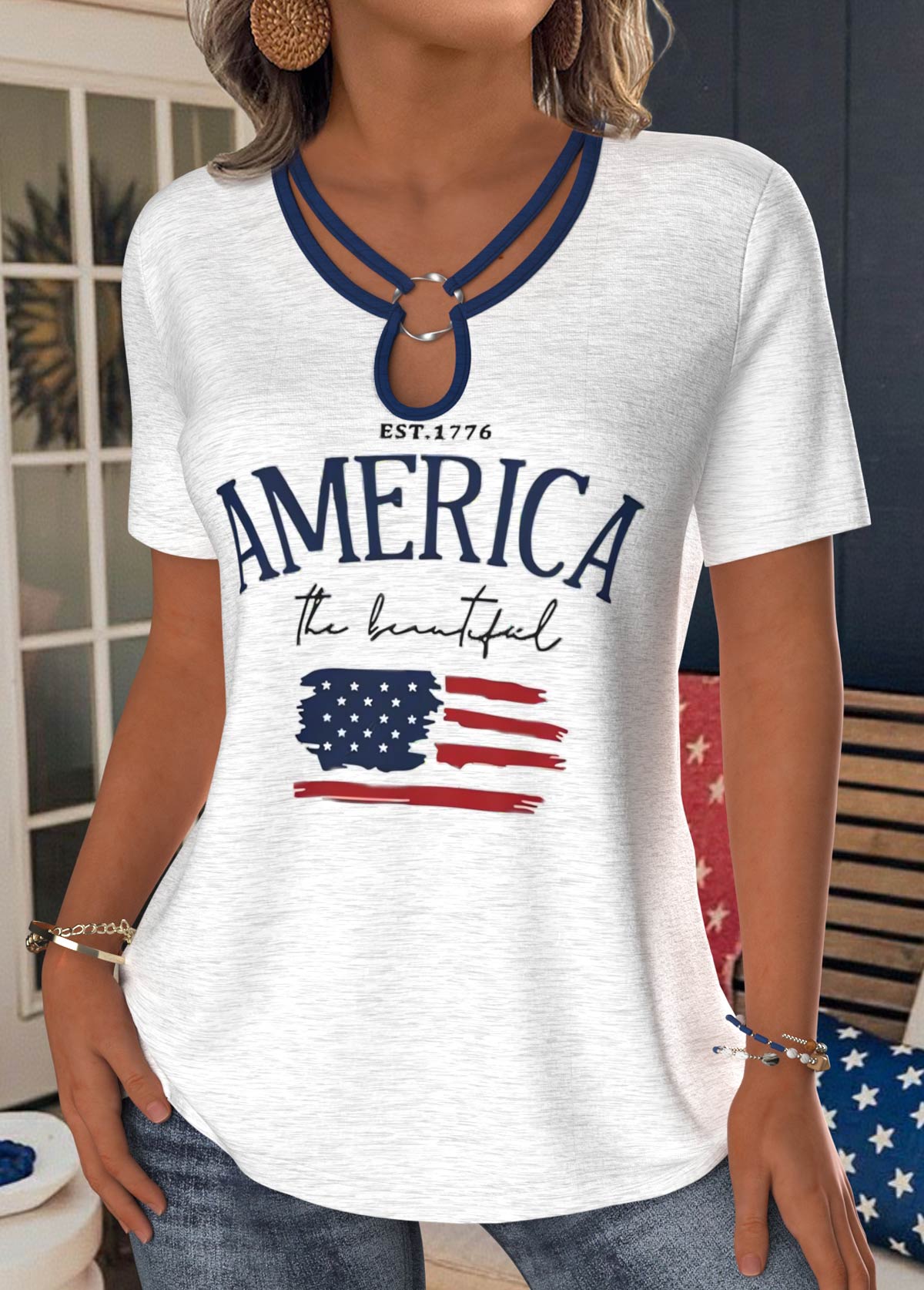 American Flag White Short Sleeve T Shirt Rosewe®