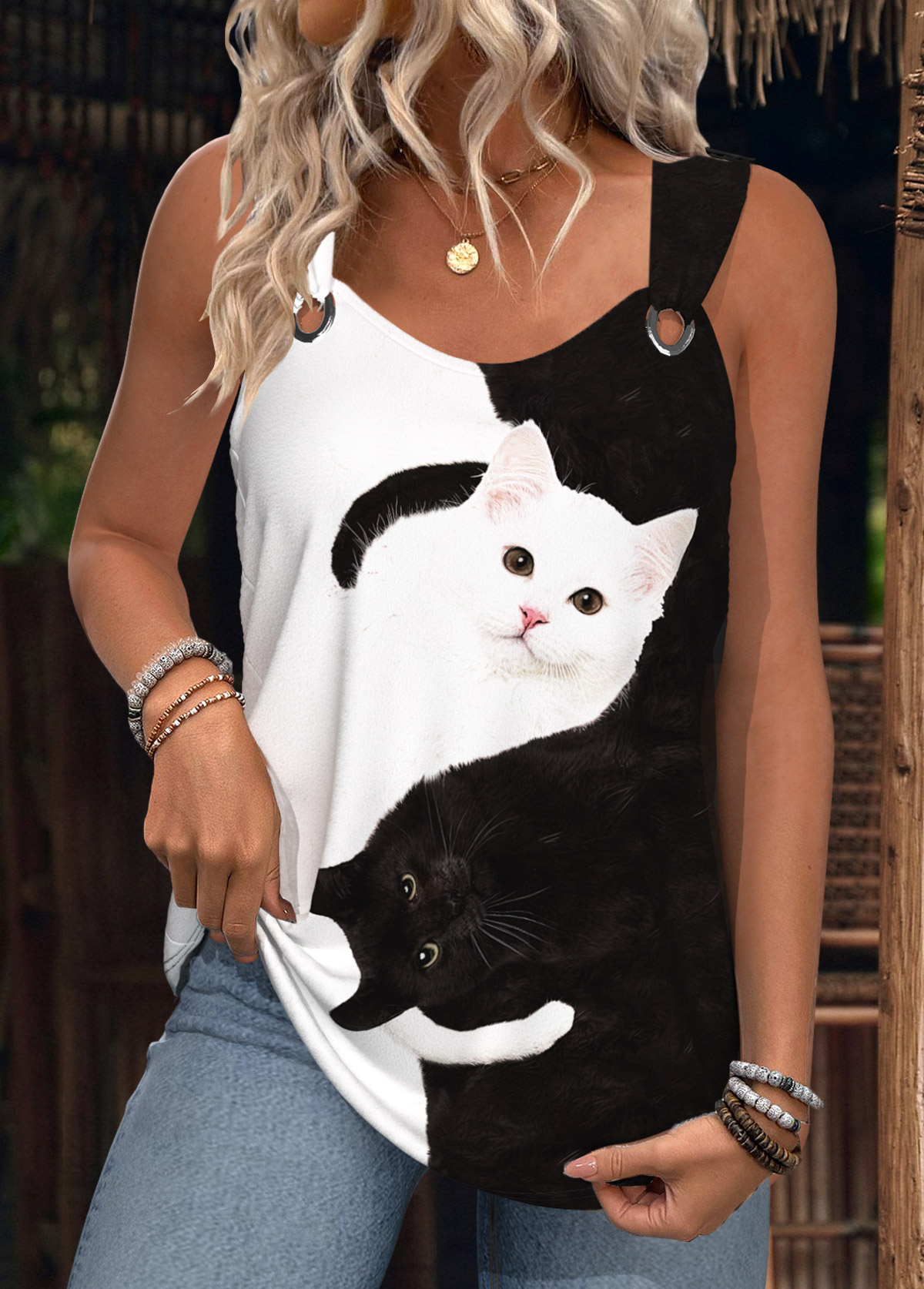 SALE Animal Print Black Sleeveless Scoop Neck Tank Top Rosewe®
