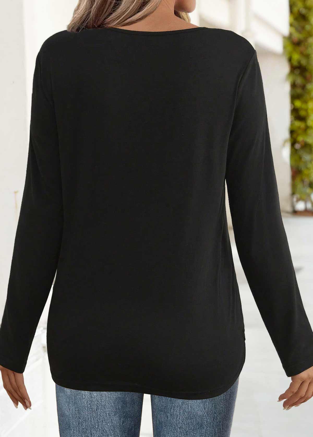 Black 3/4 Sleeve Square Neck T Shirt Rosewe®