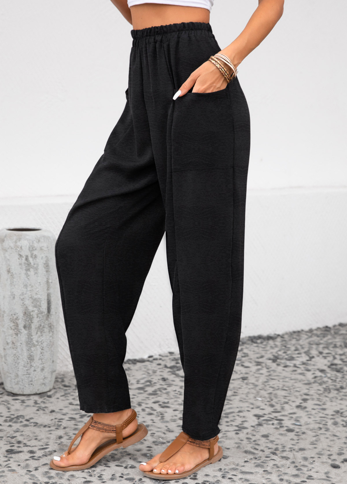 Black Elastic Waist Pocket High Waisted Pants Rosewe®