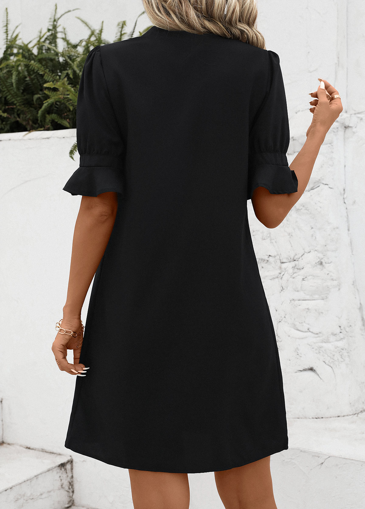 Black H Shape Half Sleeve Split Dress Rosewe®