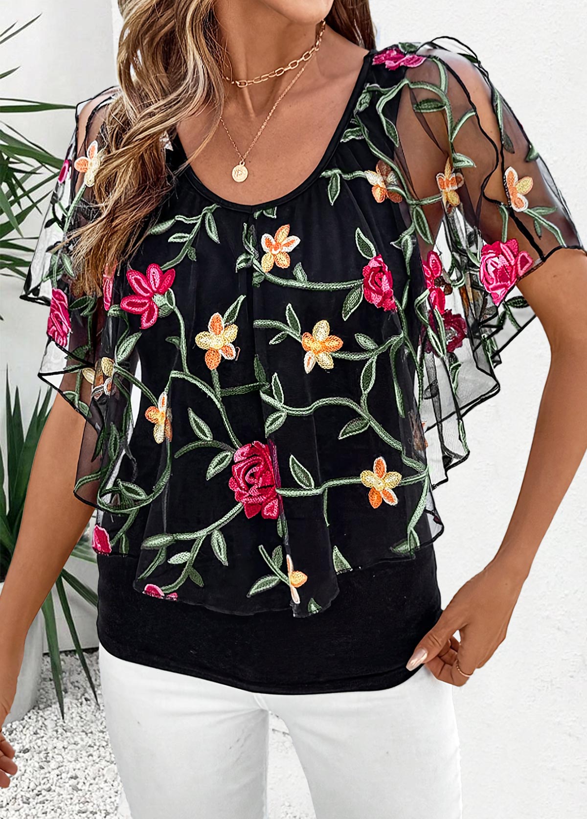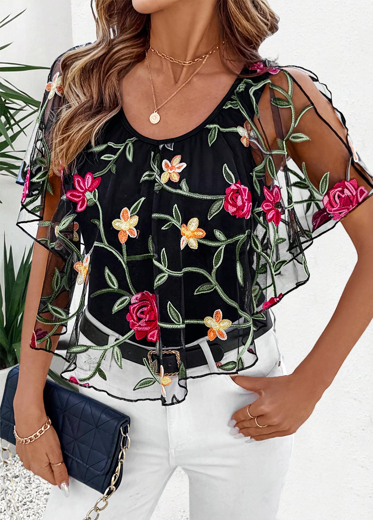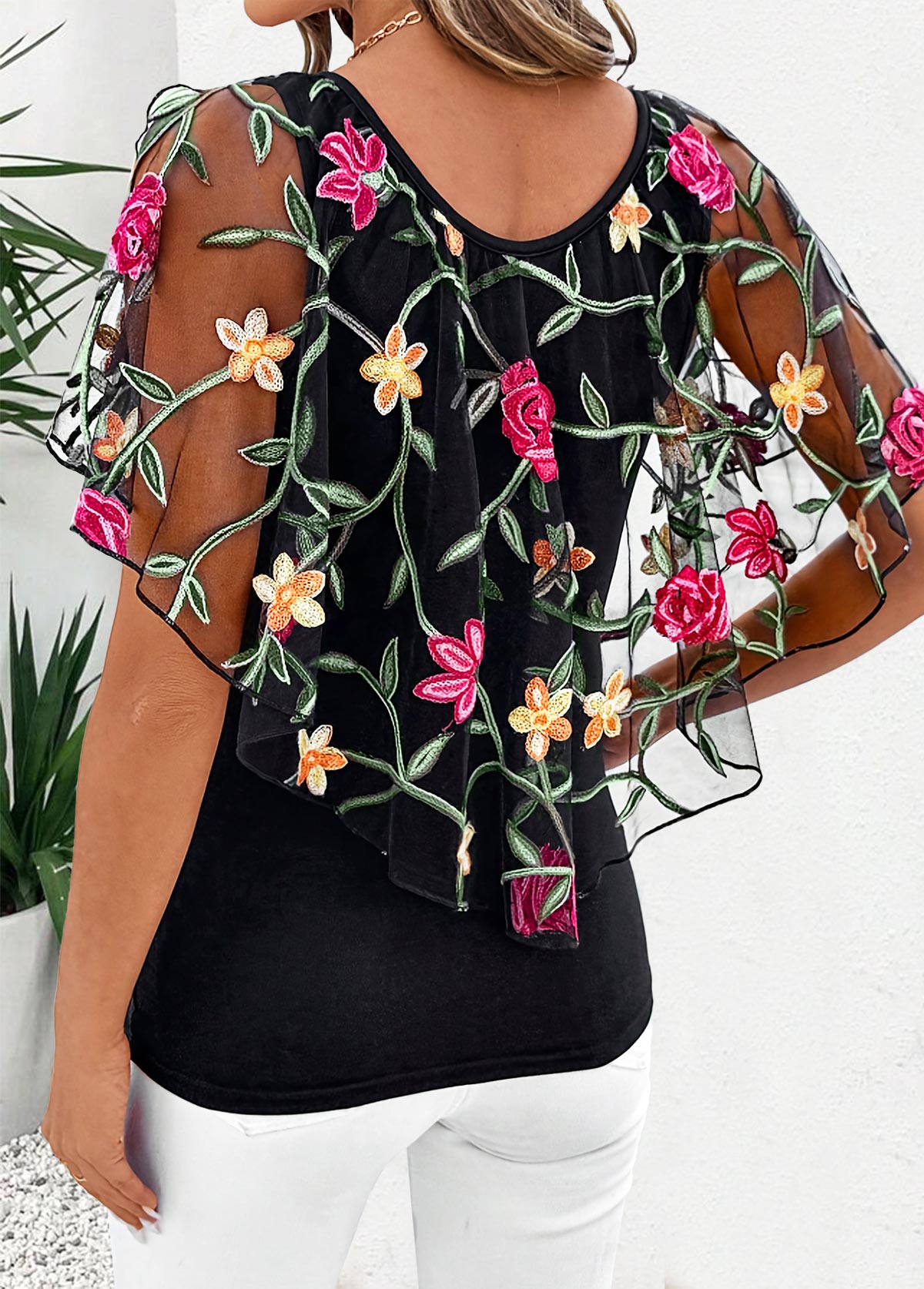 Black Short Sleeve Scoop Neck T Shirt Rosewe®