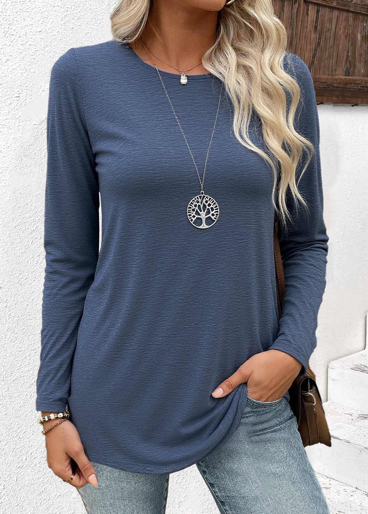 Blue Long Sleeve Round Neck T Shirt Rosewe®