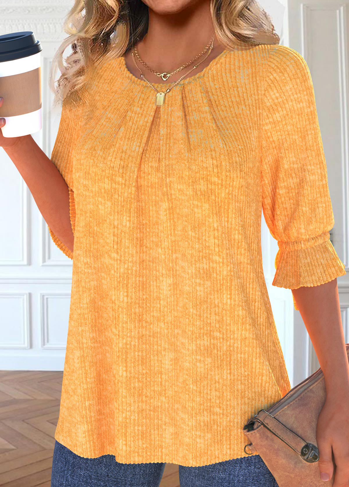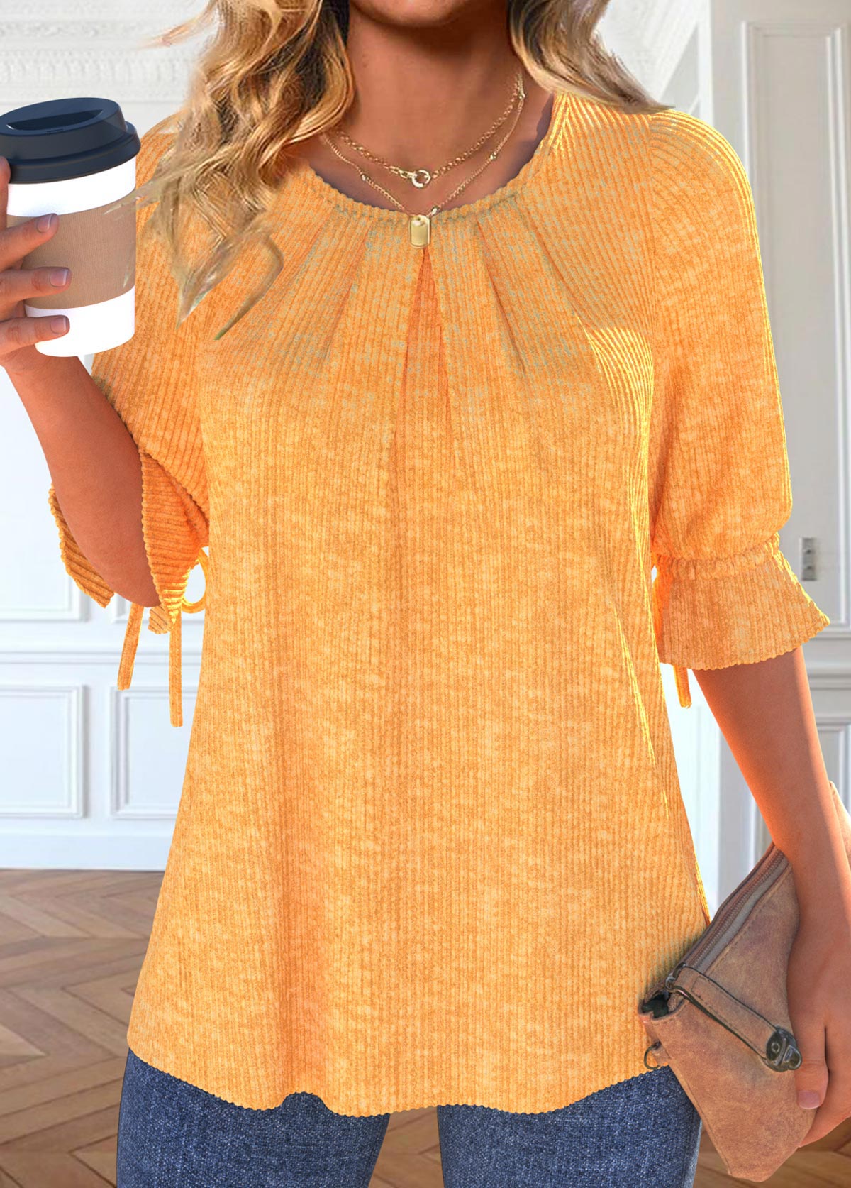 SALE Bowknot Orange Half Sleeve Round Neck T Shirt Rosewe®