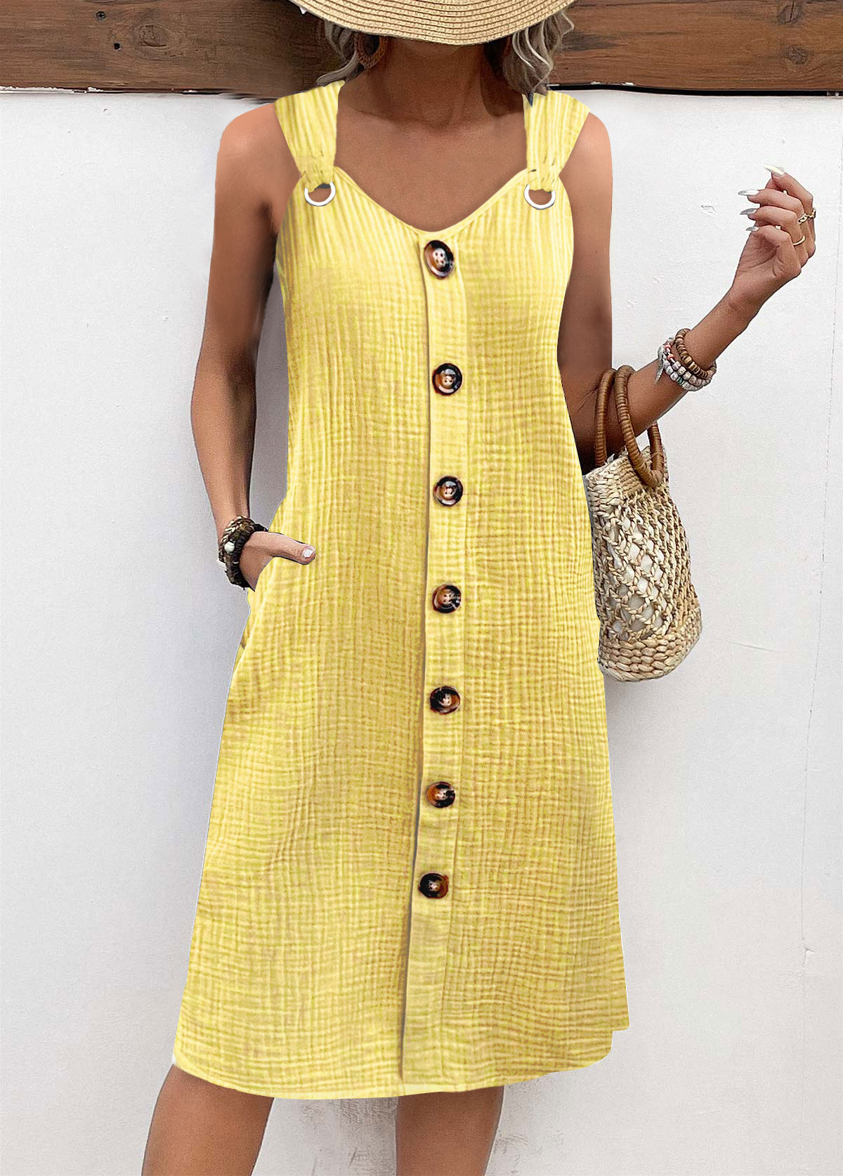 • Breathable Light Yellow A Line Sleeveless V Neck Dress
