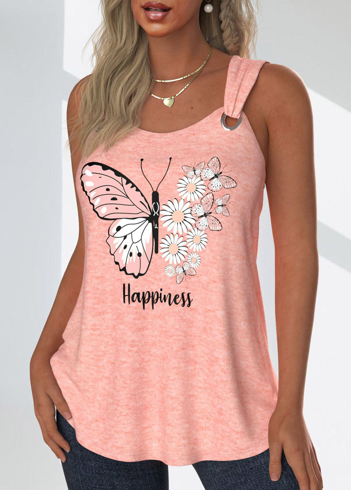 SALE Butterfly Print Grommet Dusty Pink Sleeveless Tank Top Rosewe®