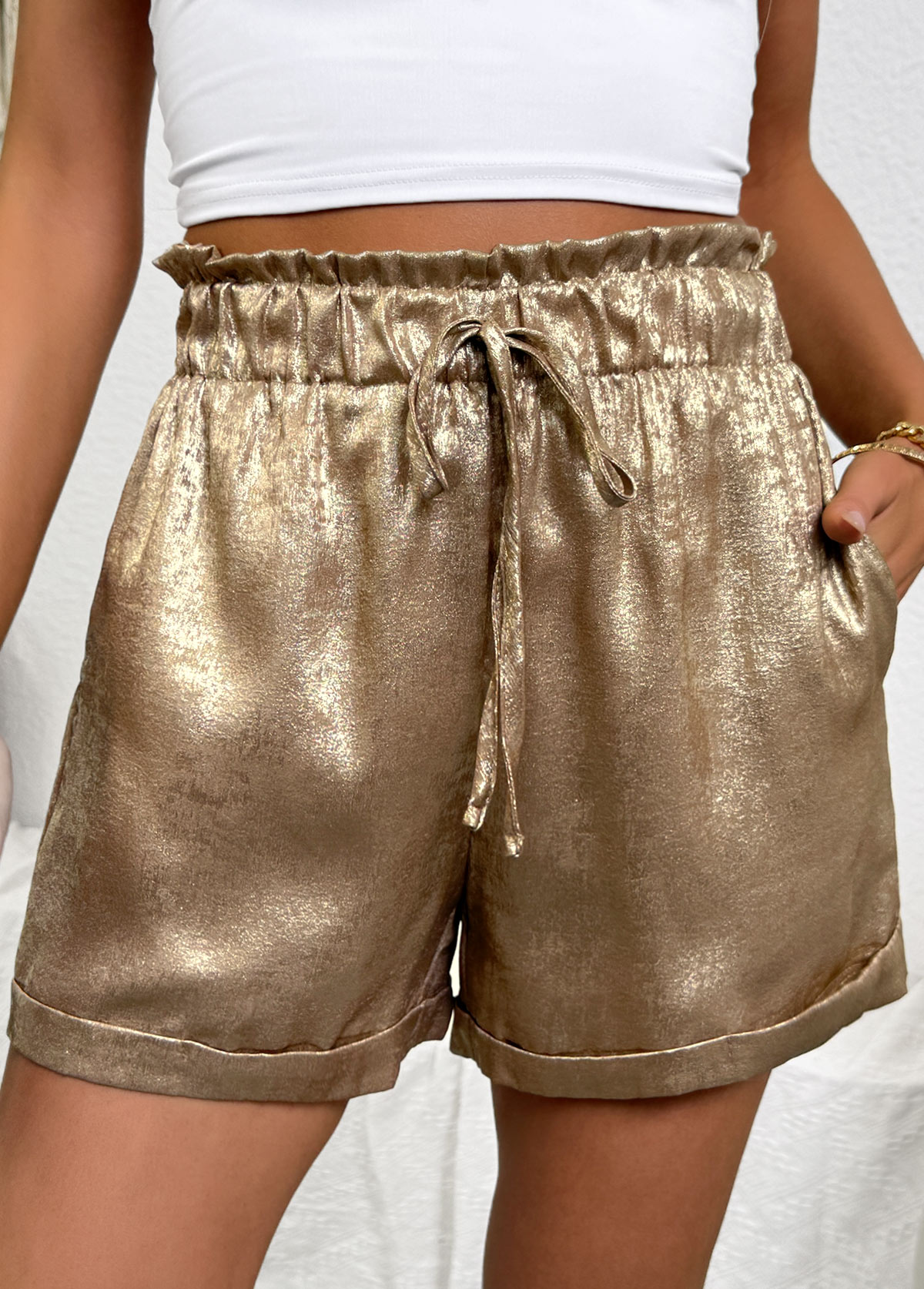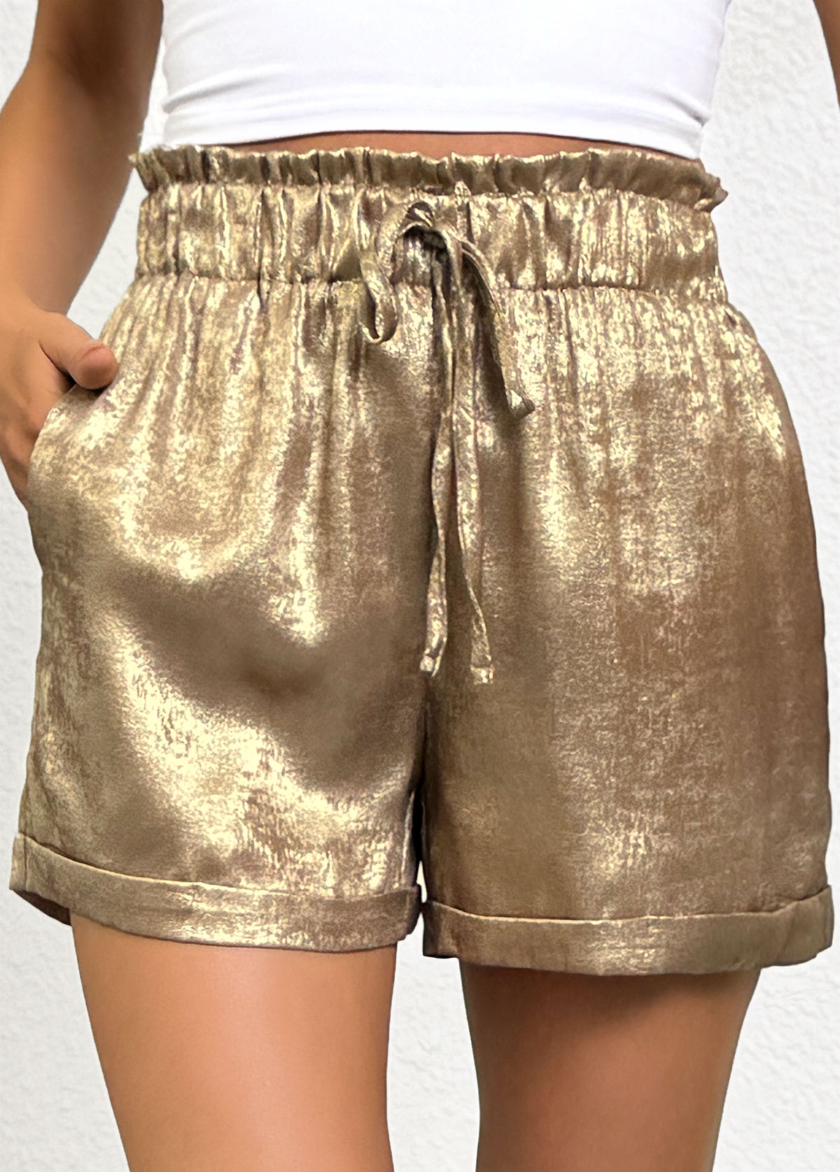 • Champagne Tie Elastic Waist High Waisted Shorts