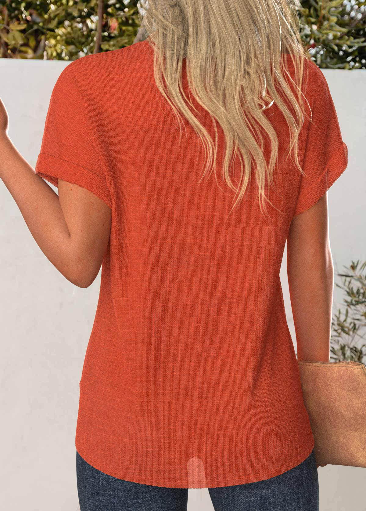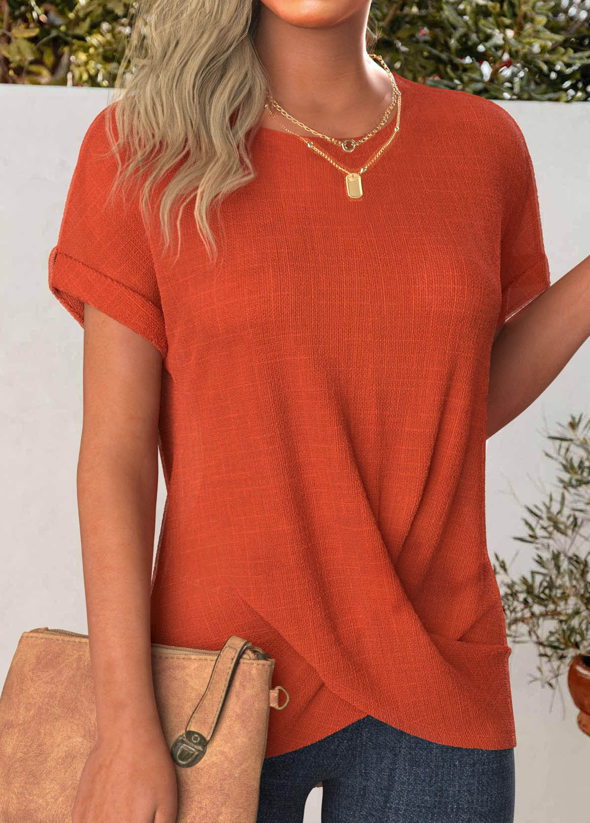 SALE Cross Hem Terracotta Short Sleeve Round Neck T Shirt Rosewe®