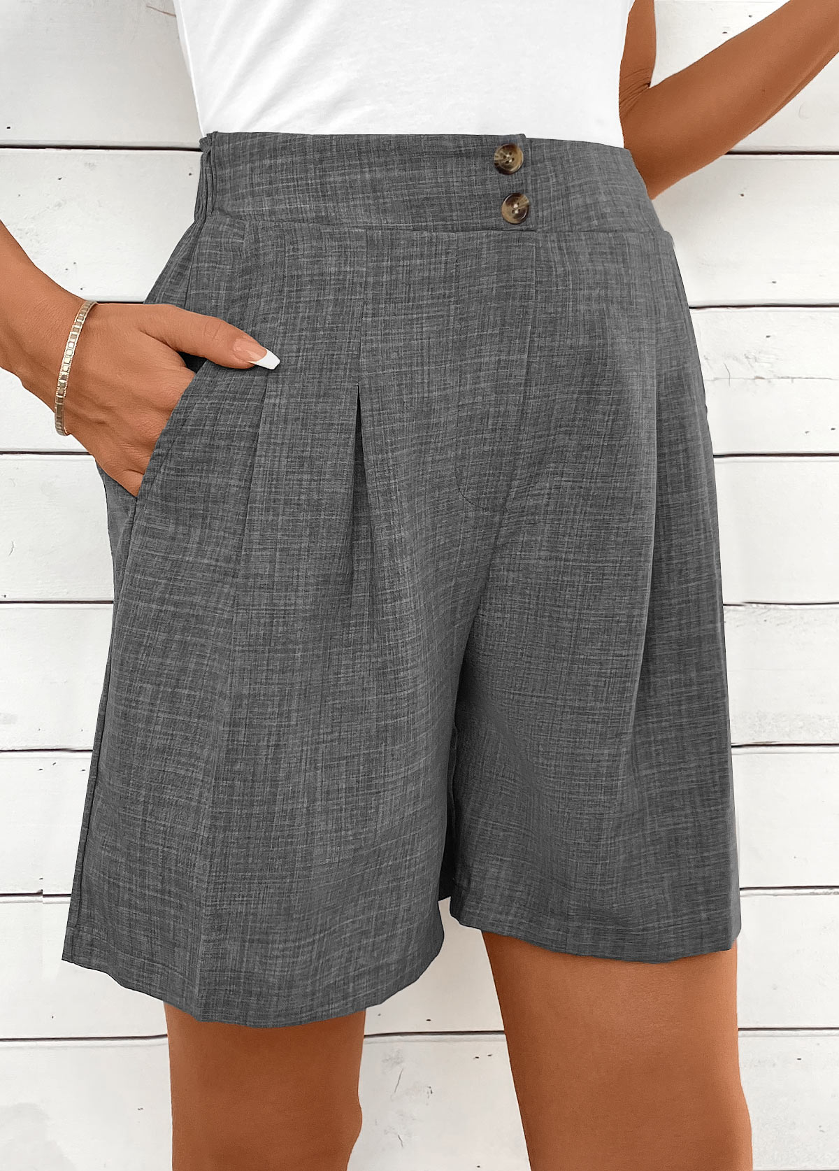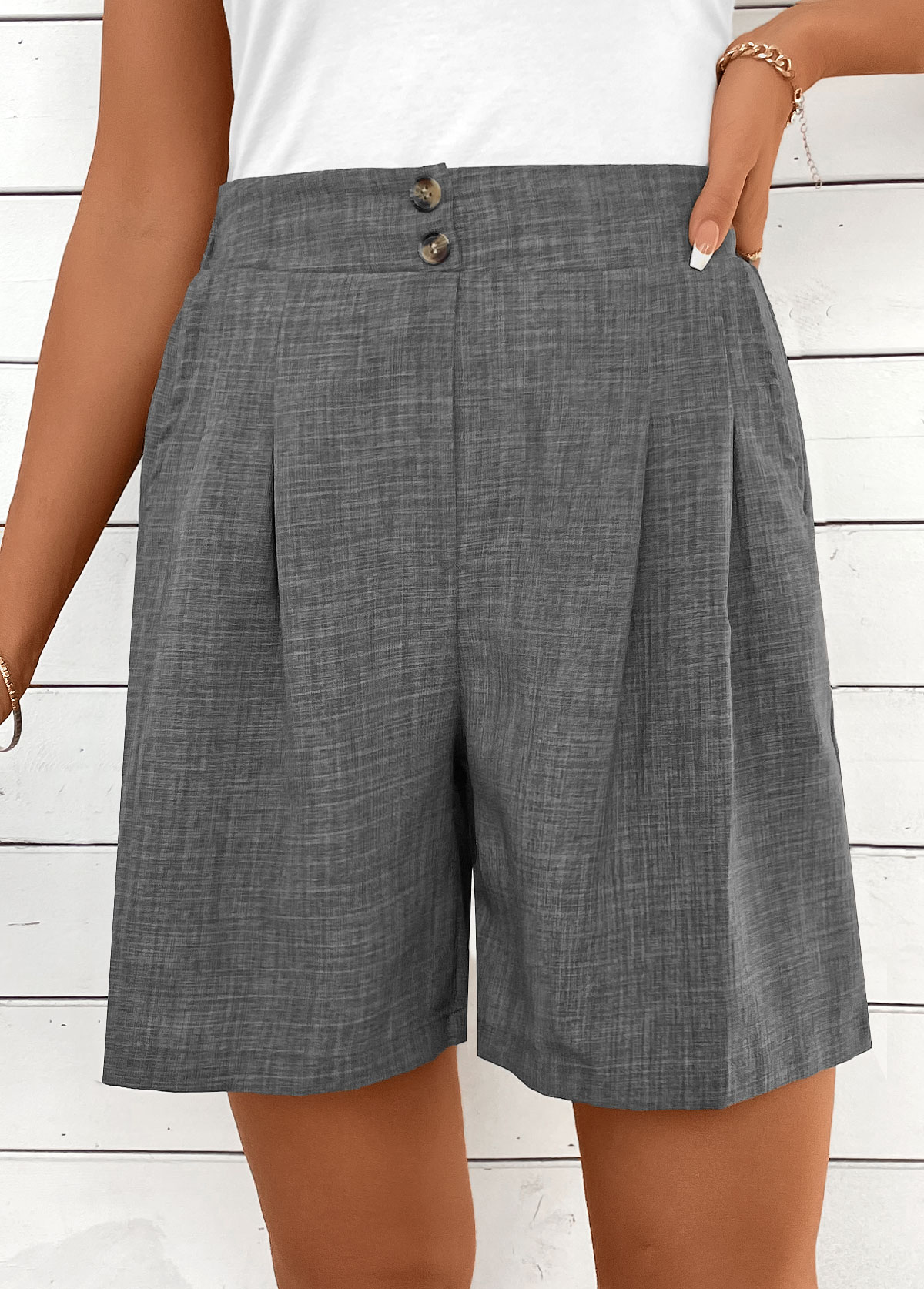 Dark Grey Marl Straight Leg High Waisted Shorts Rosewe®