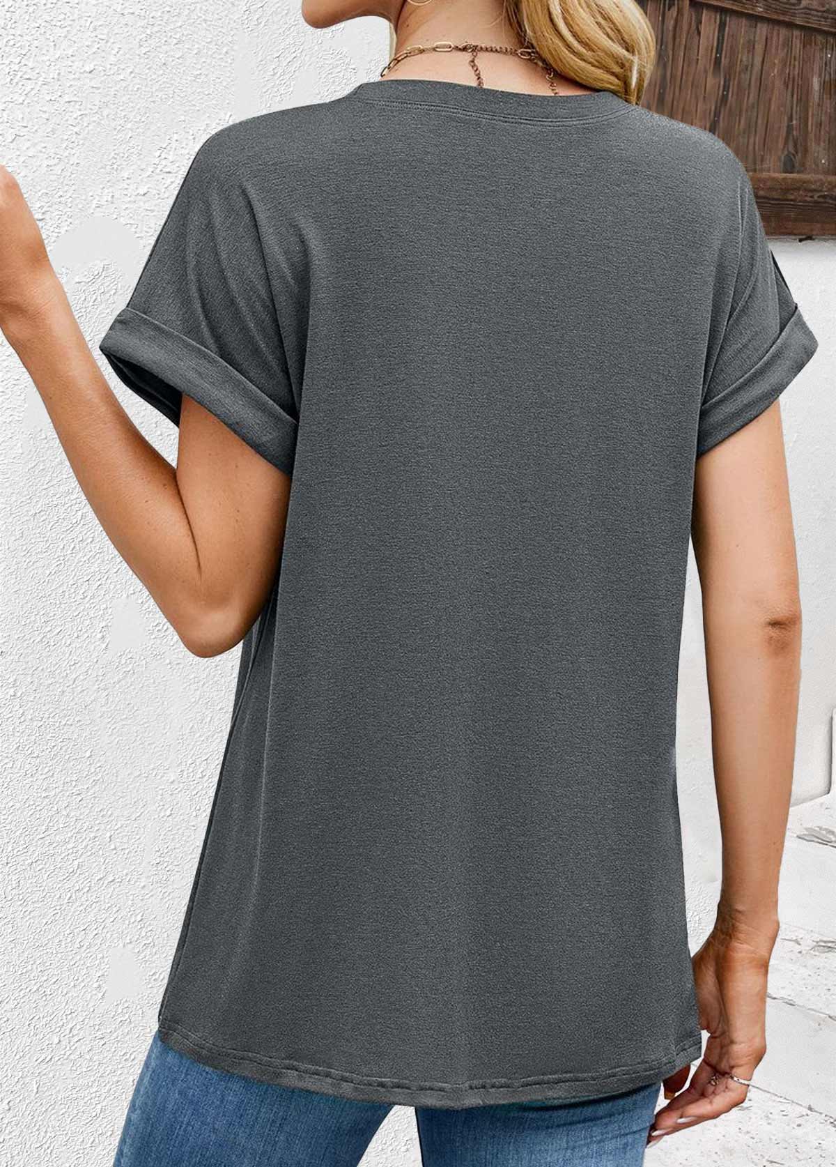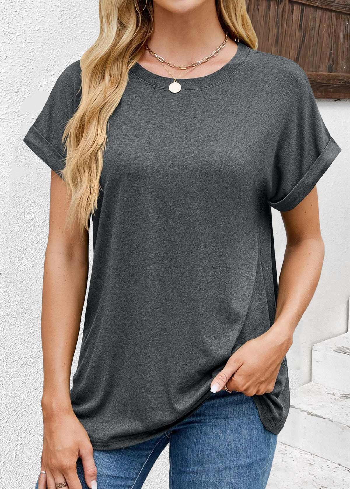 Dark Grey Short Sleeve Round Neck T Shirt Rosewe®