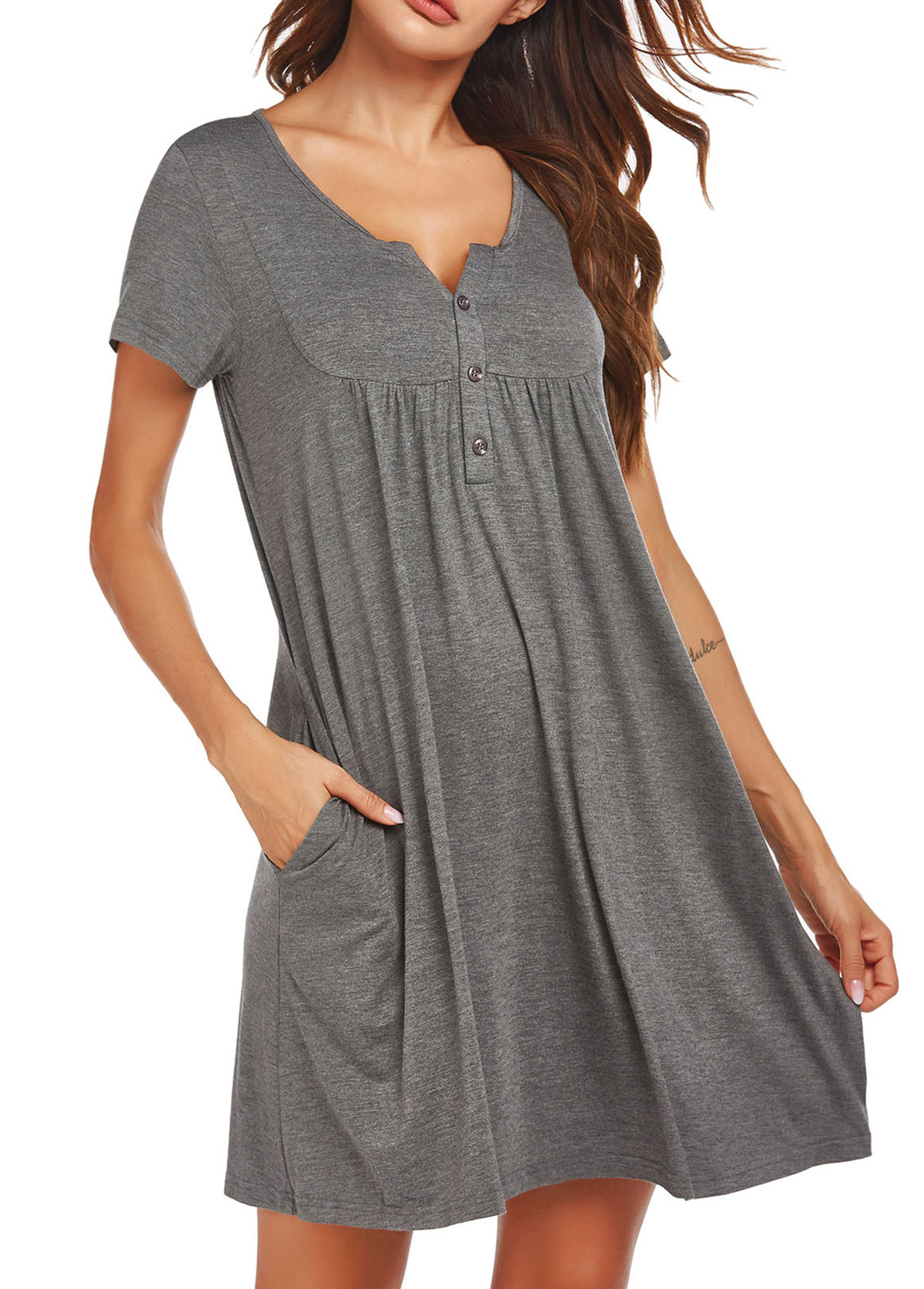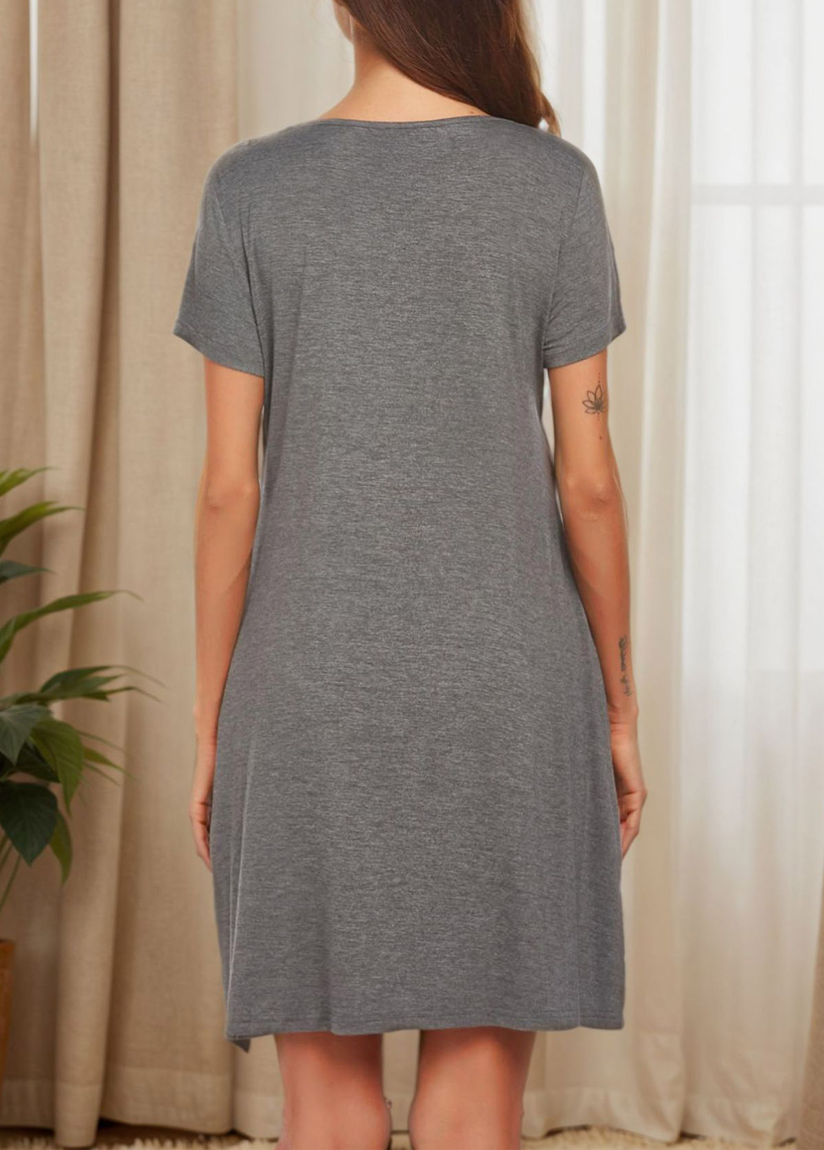 SALE Dark Grey Split Neck Short Sleeve Nightdress Rosewe®