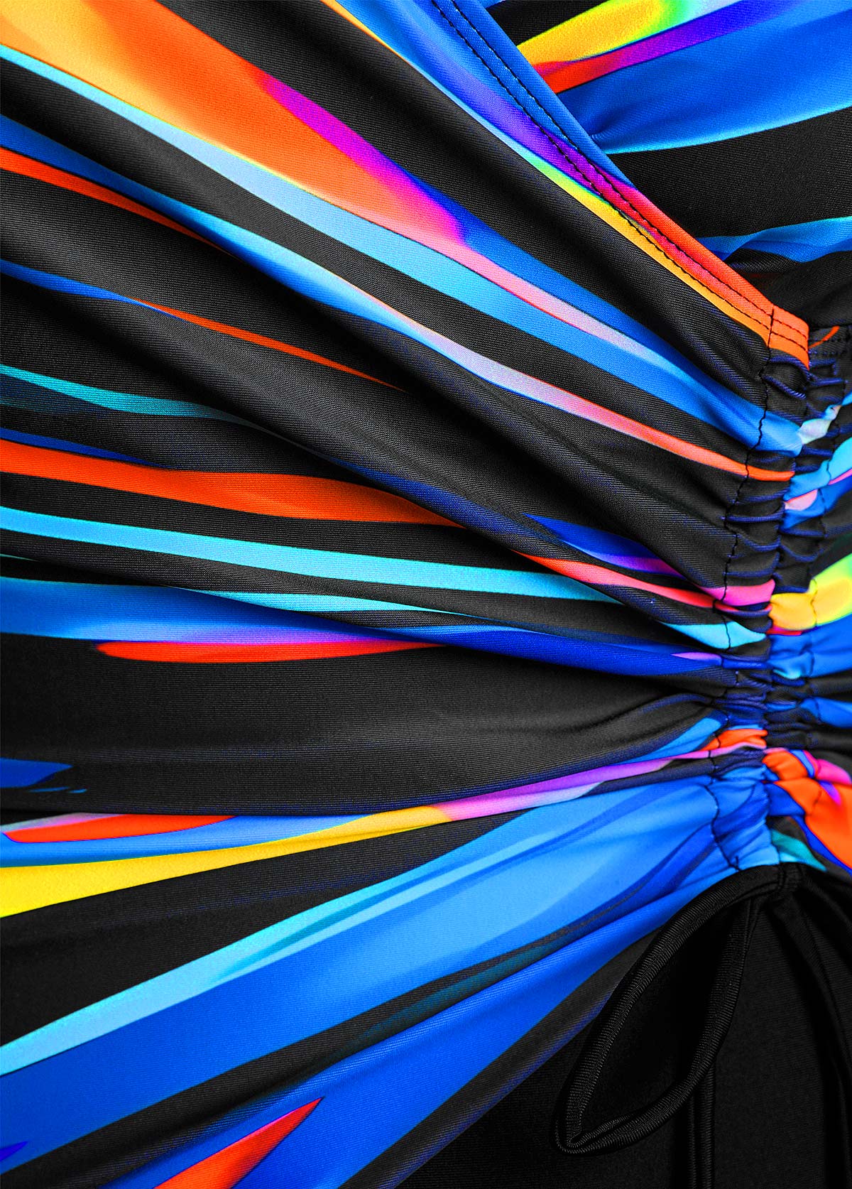 Dazzle Colorful Print Surplice Black One Piece Swimwear Rosewe®