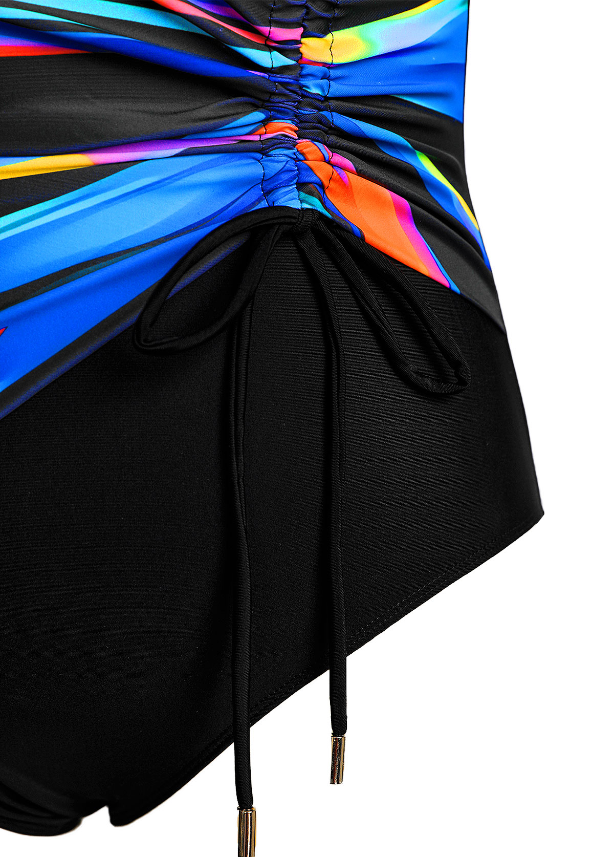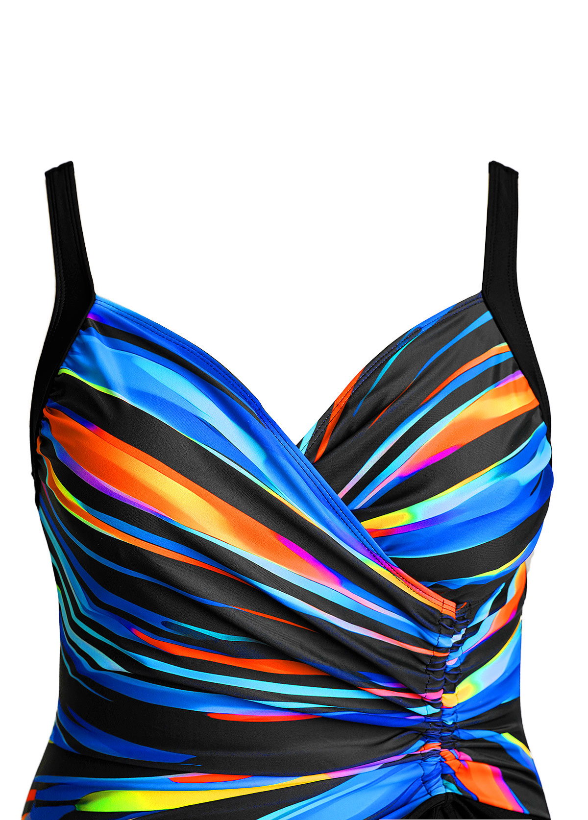 • Make a bold statement in this stunning one-piece, designed to turn heads with its vibrant hues. The side ruching at the waist accentuates your curves, while the tummy control feature offers a smooth, flattering fit. Perfect for those who want style and confidence all in one.