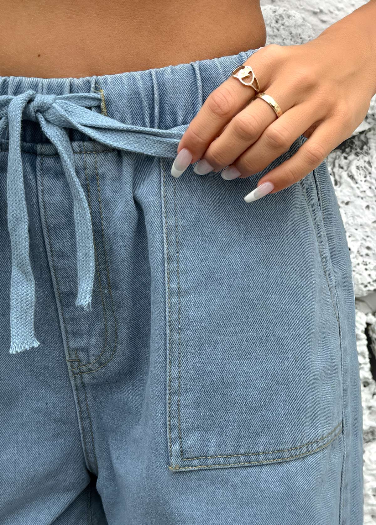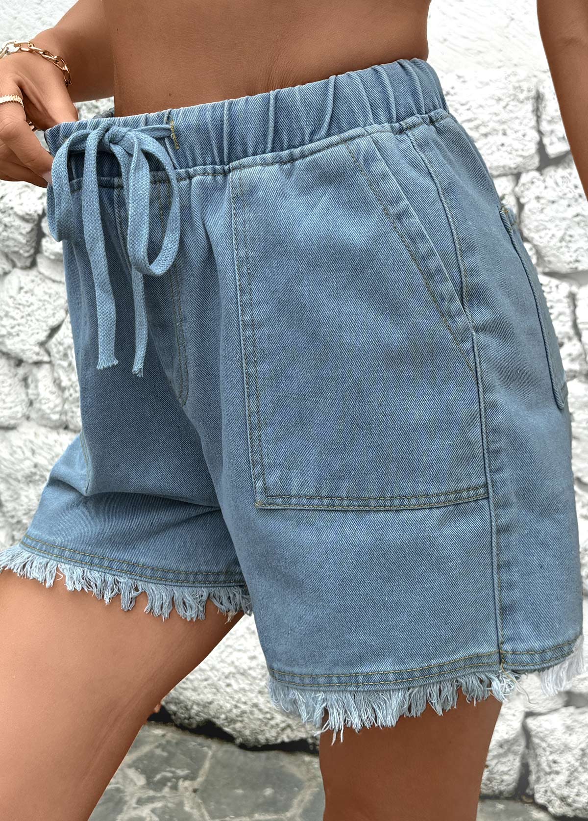 SALE Denim Blue Elastic Waist High Waisted Shorts Rosewe®