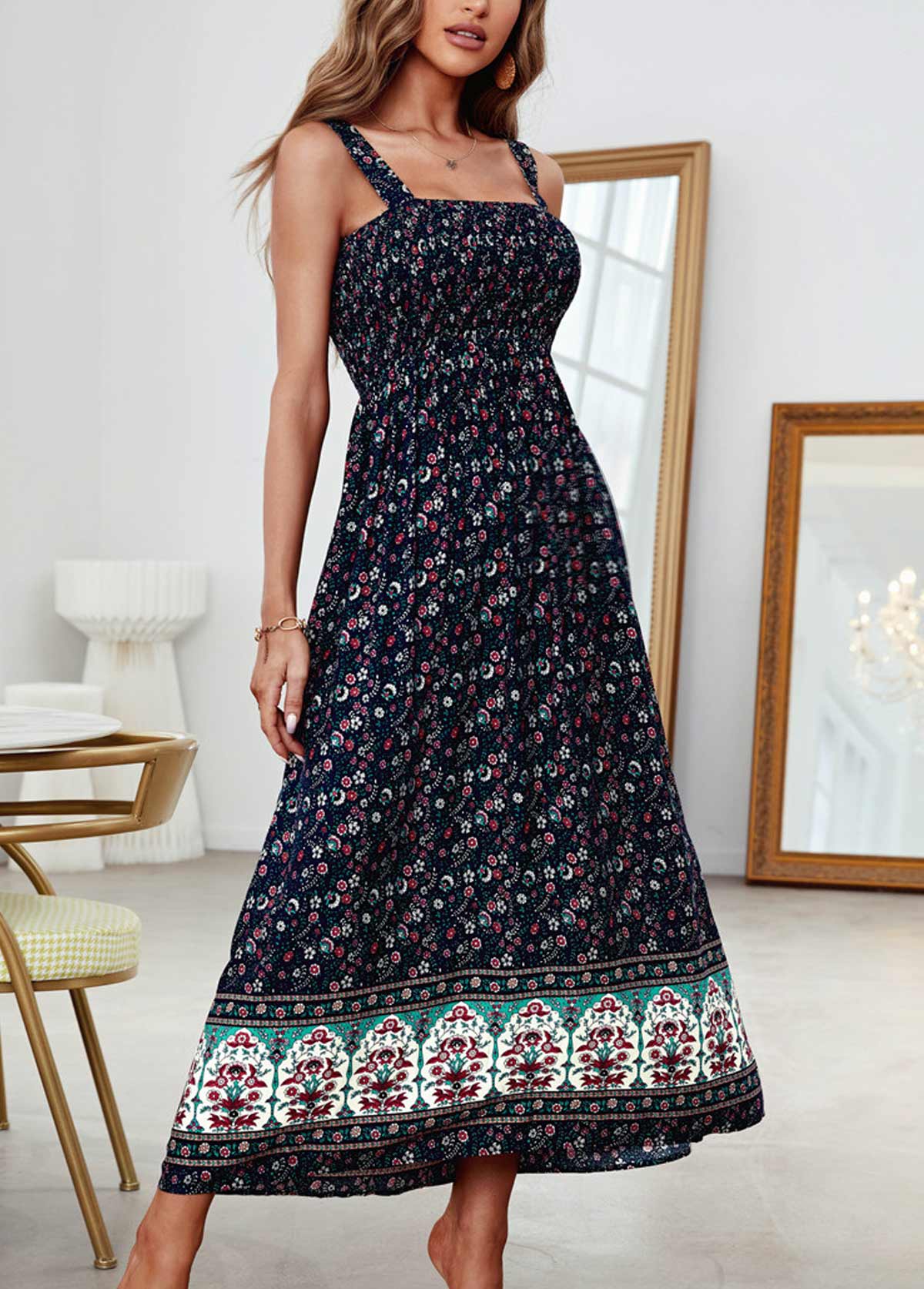 SALE Ditsy Floral Print Smocked Navy Bandeau Dress Rosewe®