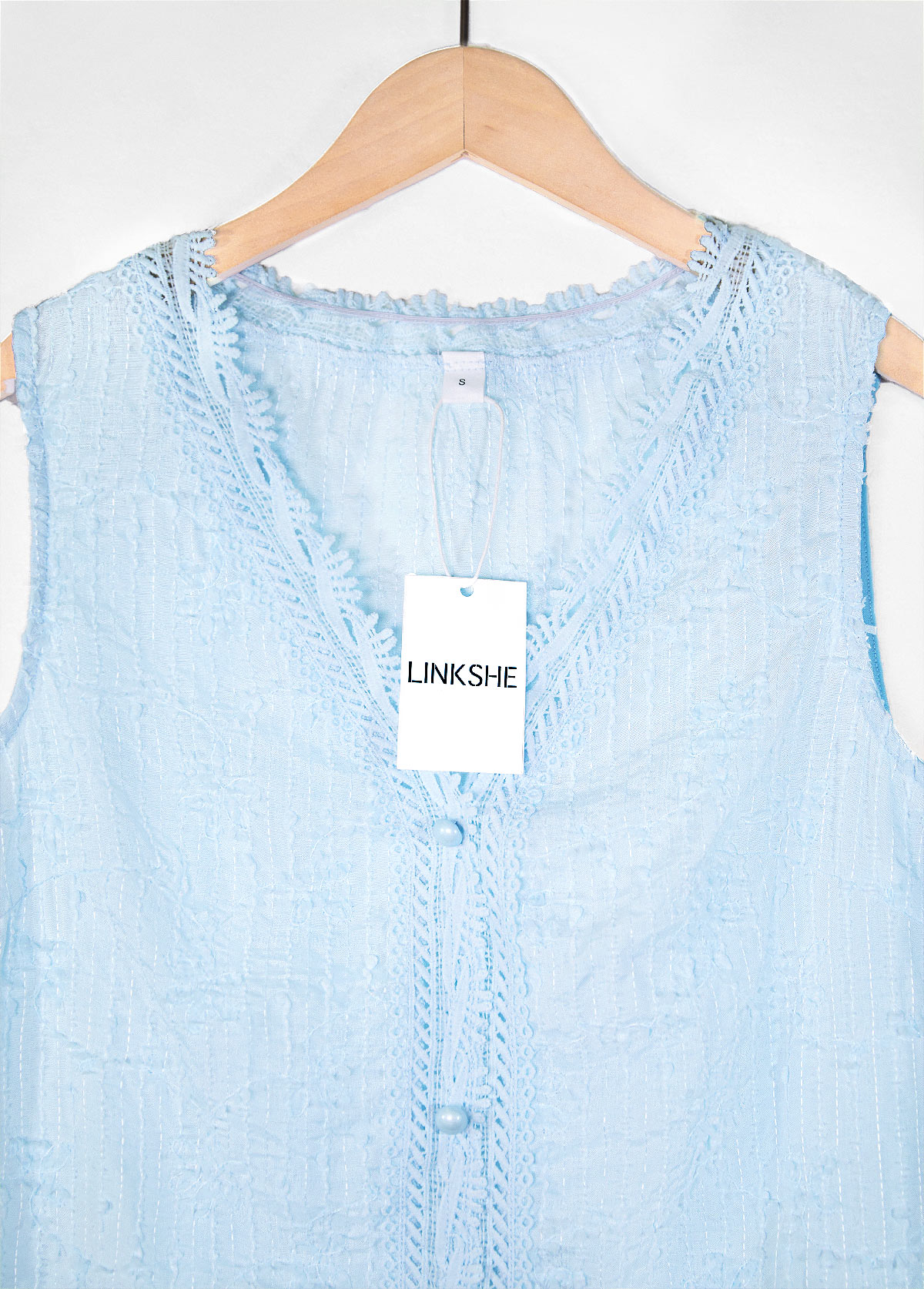 • Embroidery Light Blue Sleeveless V Neck Tank Top