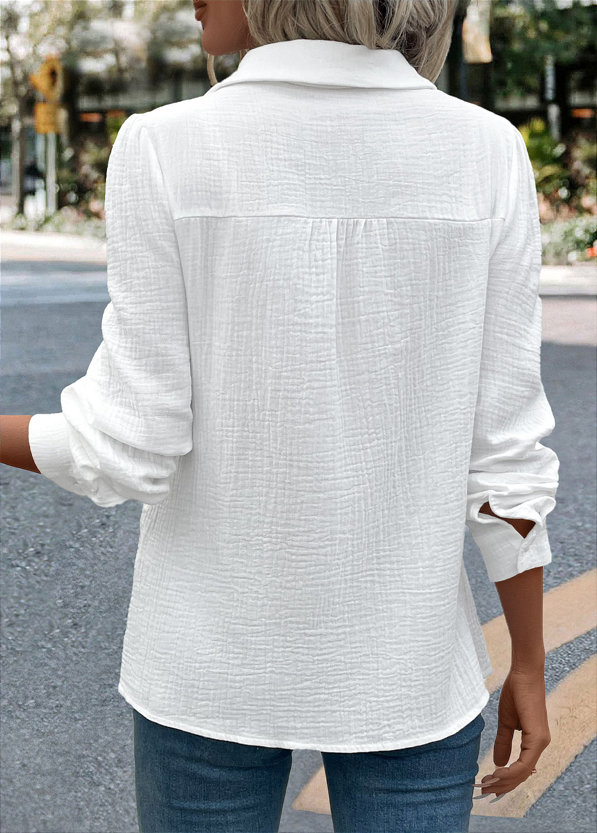 Embroidery Long Sleeve White Tunic Shirt Rosewe®