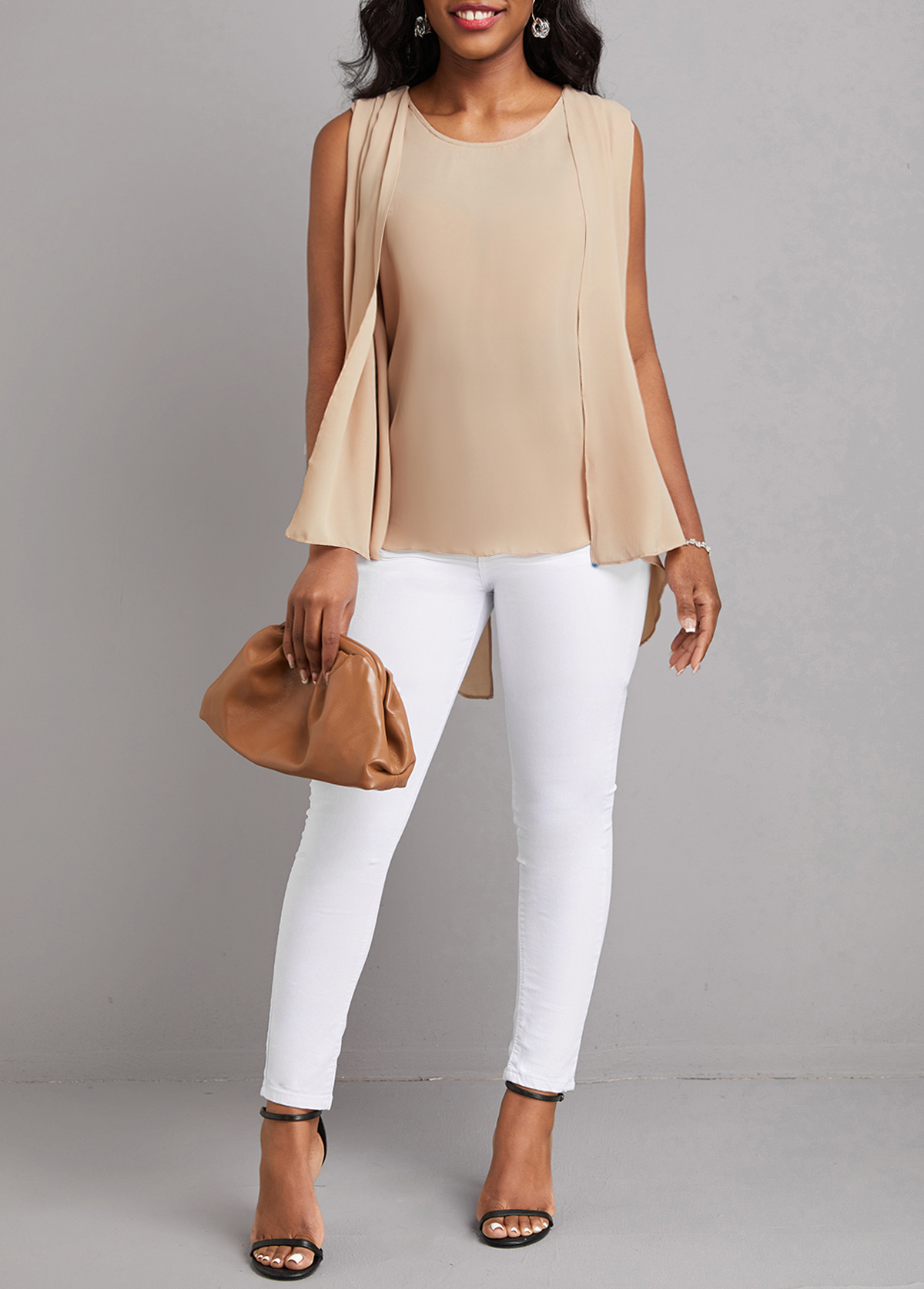 SALE Fake 2in1 Light Coffee Zipper Tank Top Rosewe®