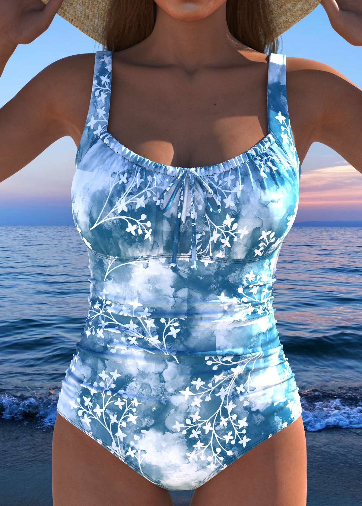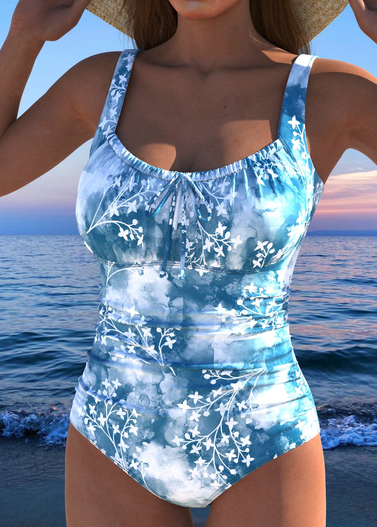 Floral Print Bowknot Dusty Blue One Piece Swimwear Rosewe®