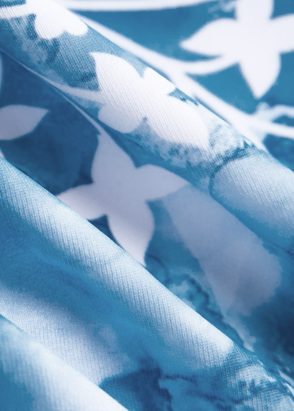 • Floral Print Bowknot Dusty Blue One Piece Swimwear