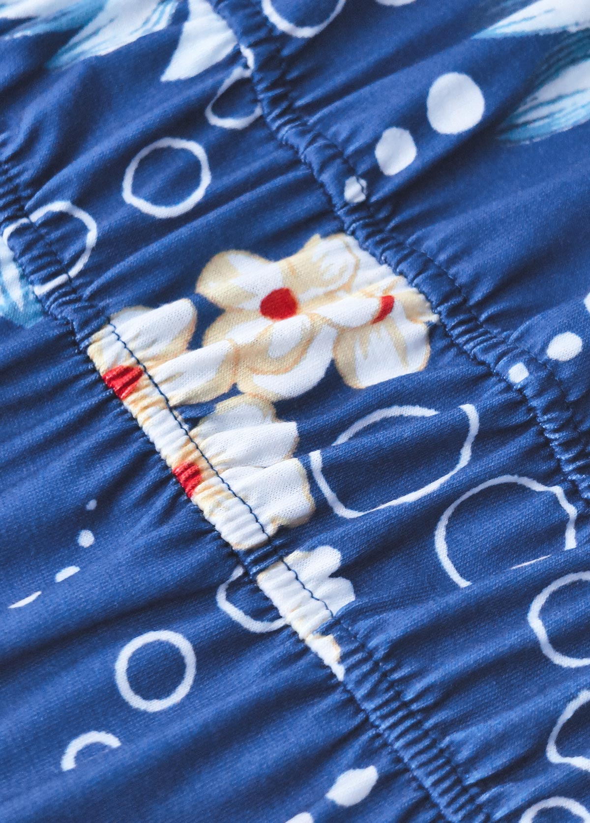 • Floral Print Circular Ring Blue Strappy V Neck Dress