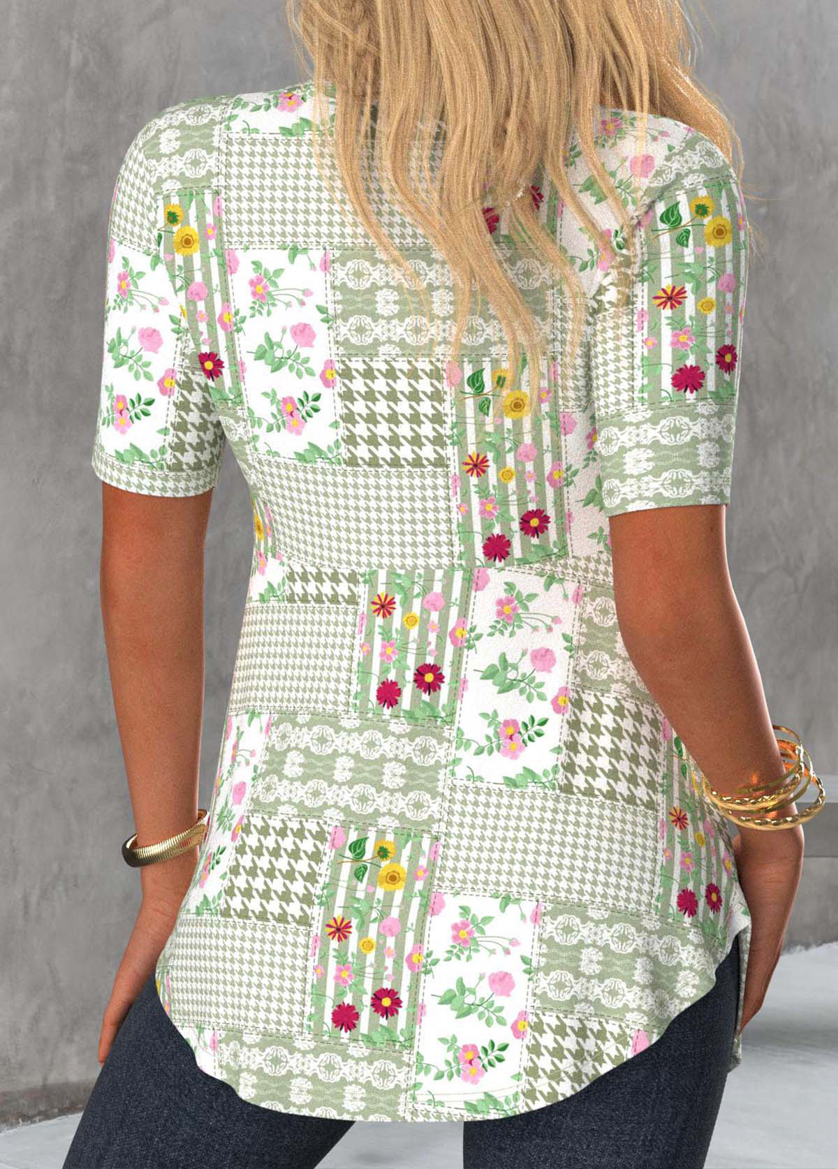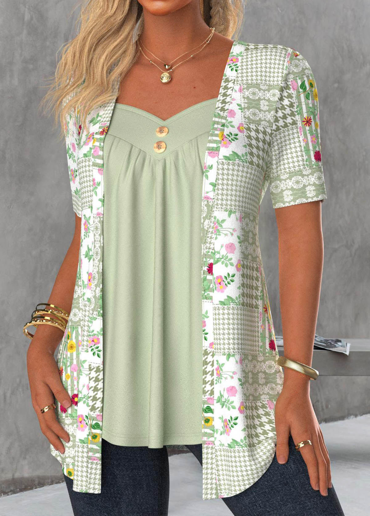 Floral Print Sage Green Fake Two Piece Twinset Rosewe®