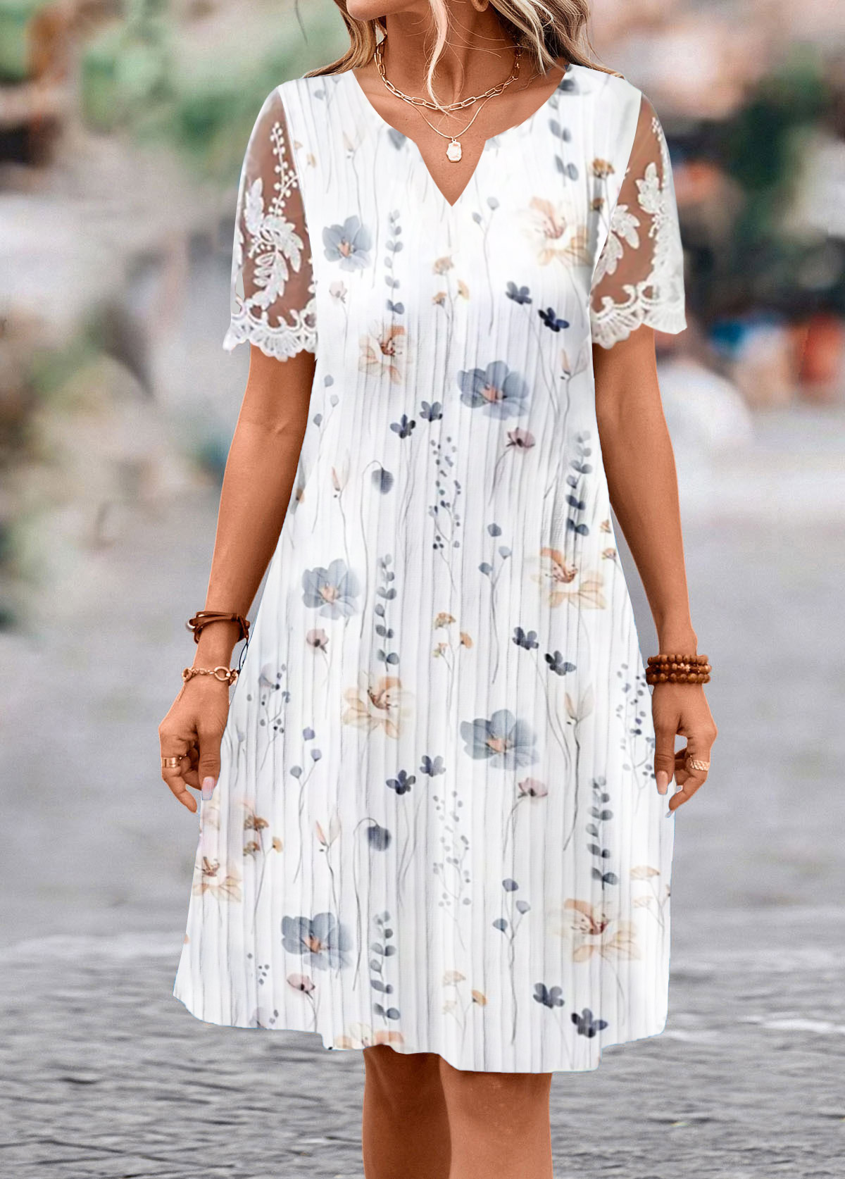 SALE Floral Print Lace White A Line Short Sleeve Dress Rosewe®