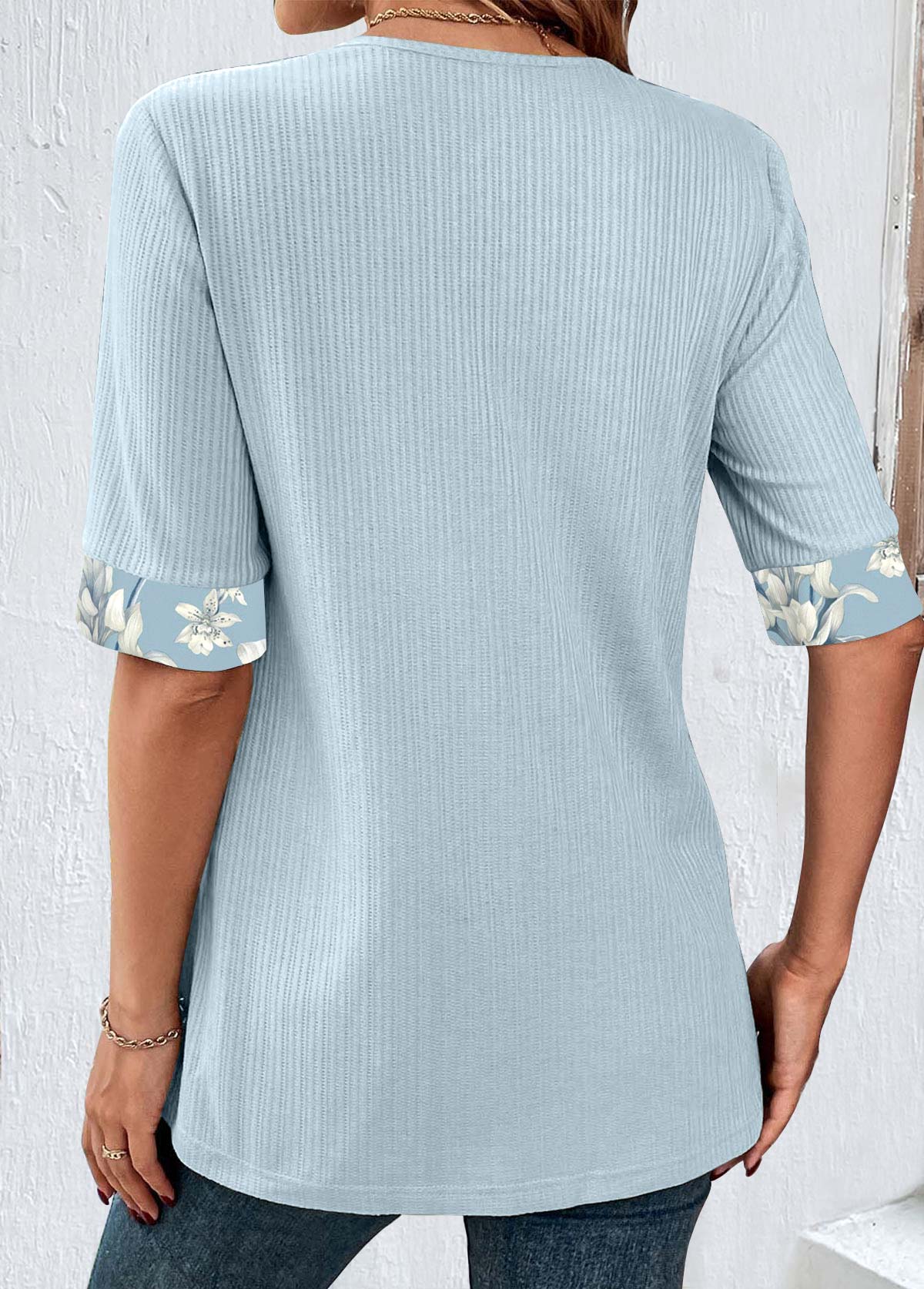 • Floral Print Light Blue Fake Two Piece Twinset