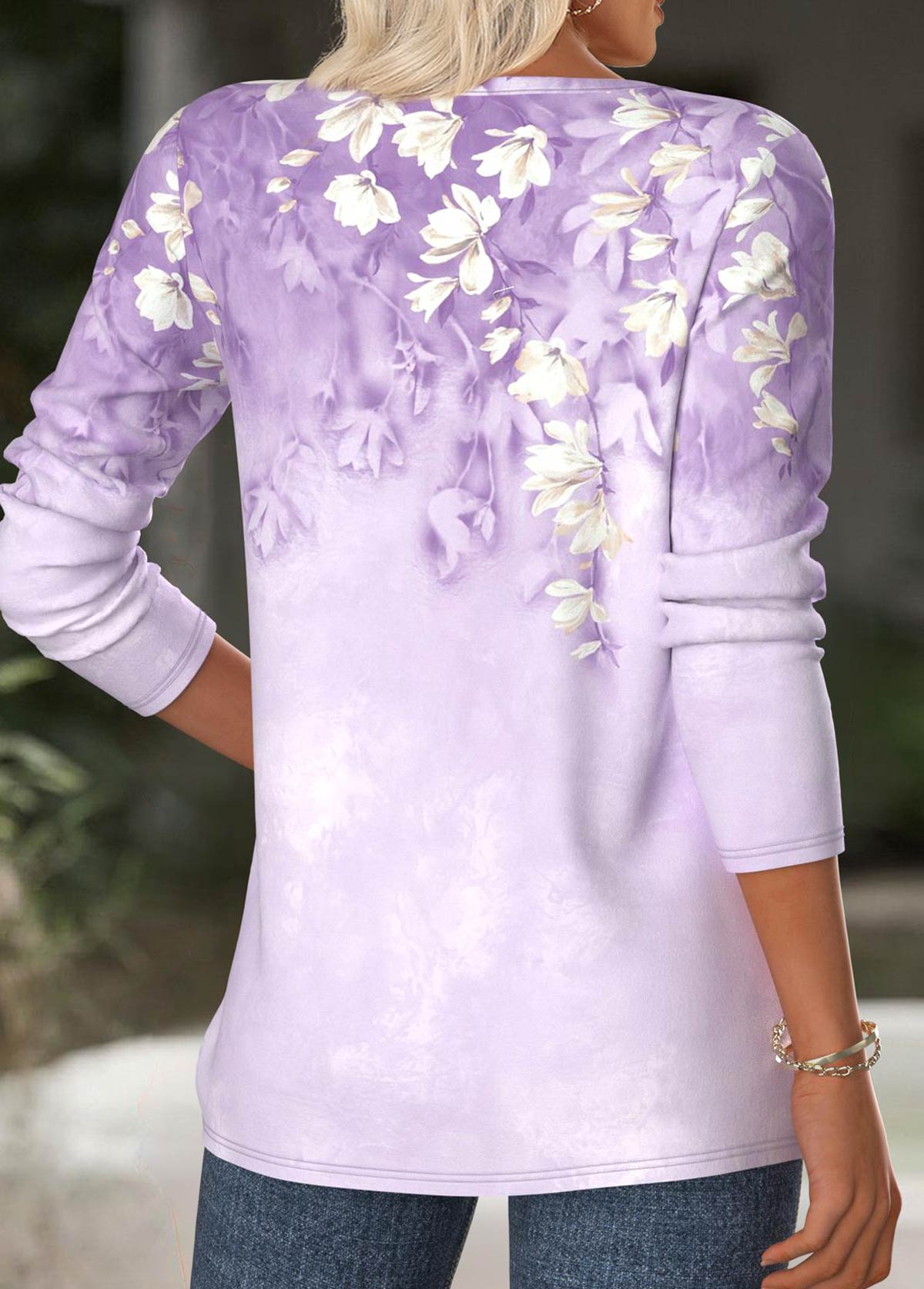 SALE Floral Print Light Purple Long Sleeve T Shirt Rosewe®
