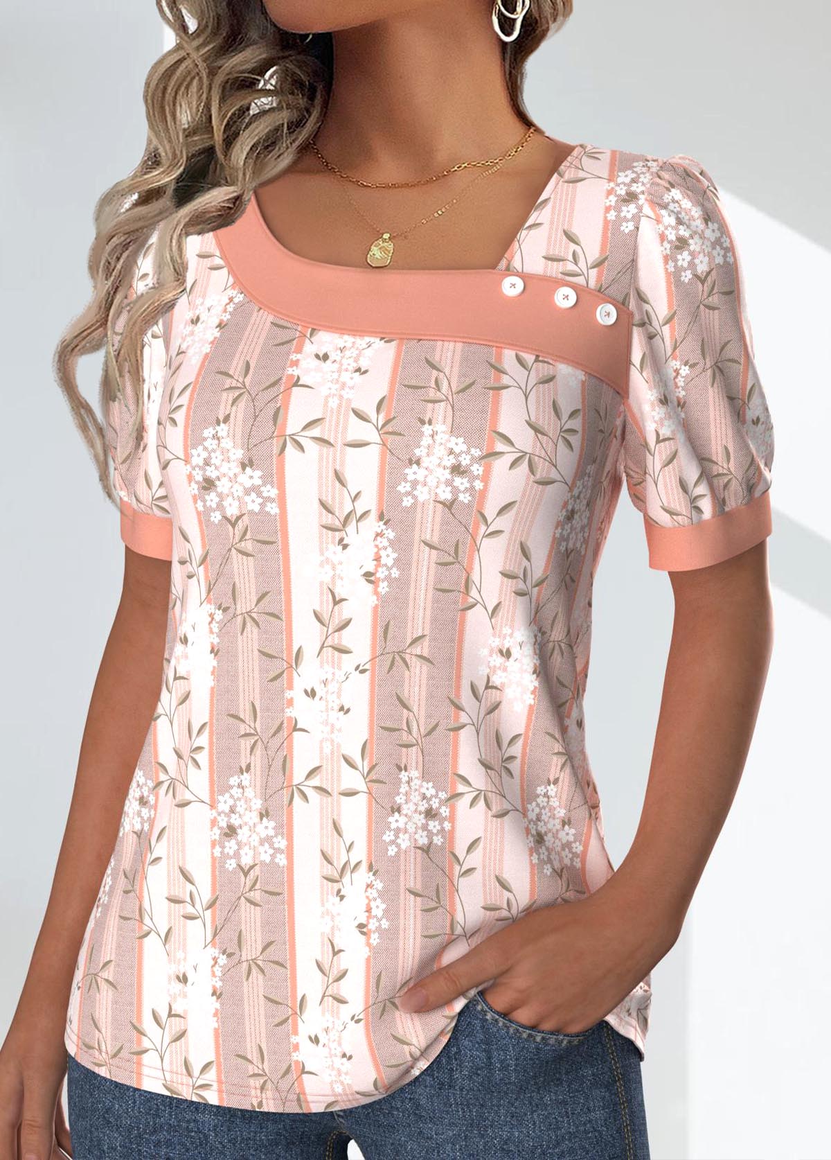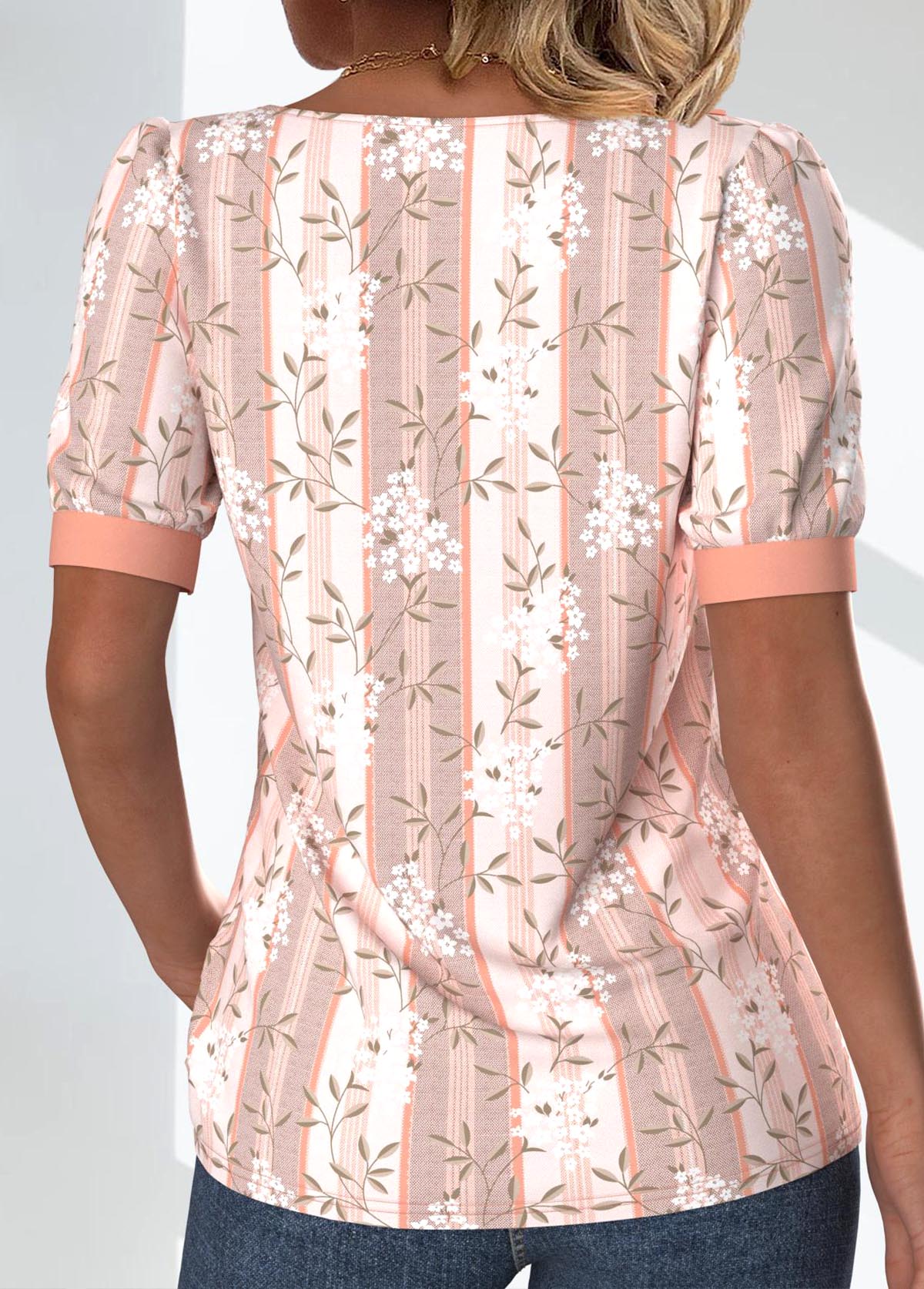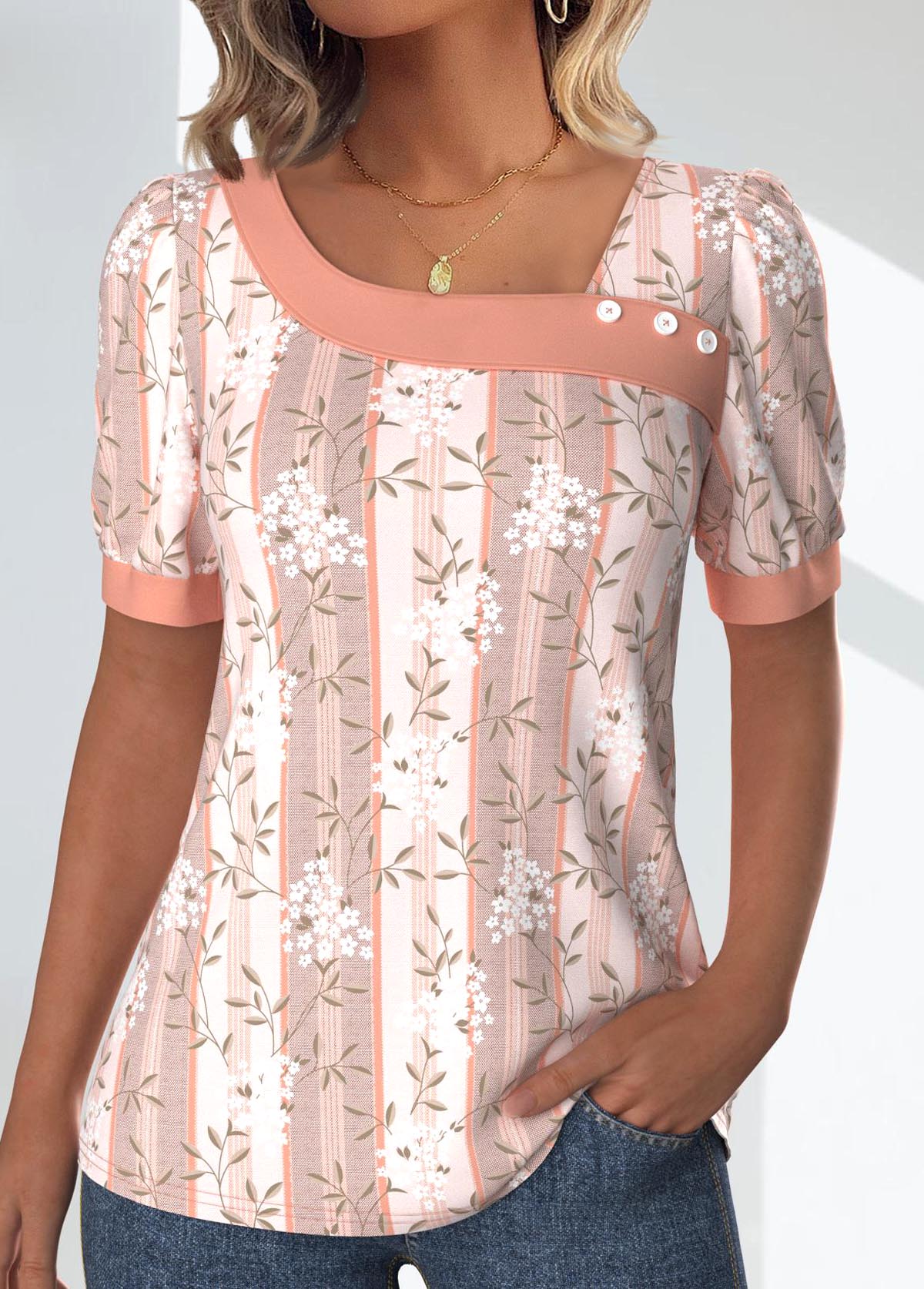 SALE Floral Print Patchwork Light Pink Short Sleeve T Shirt Rosewe®