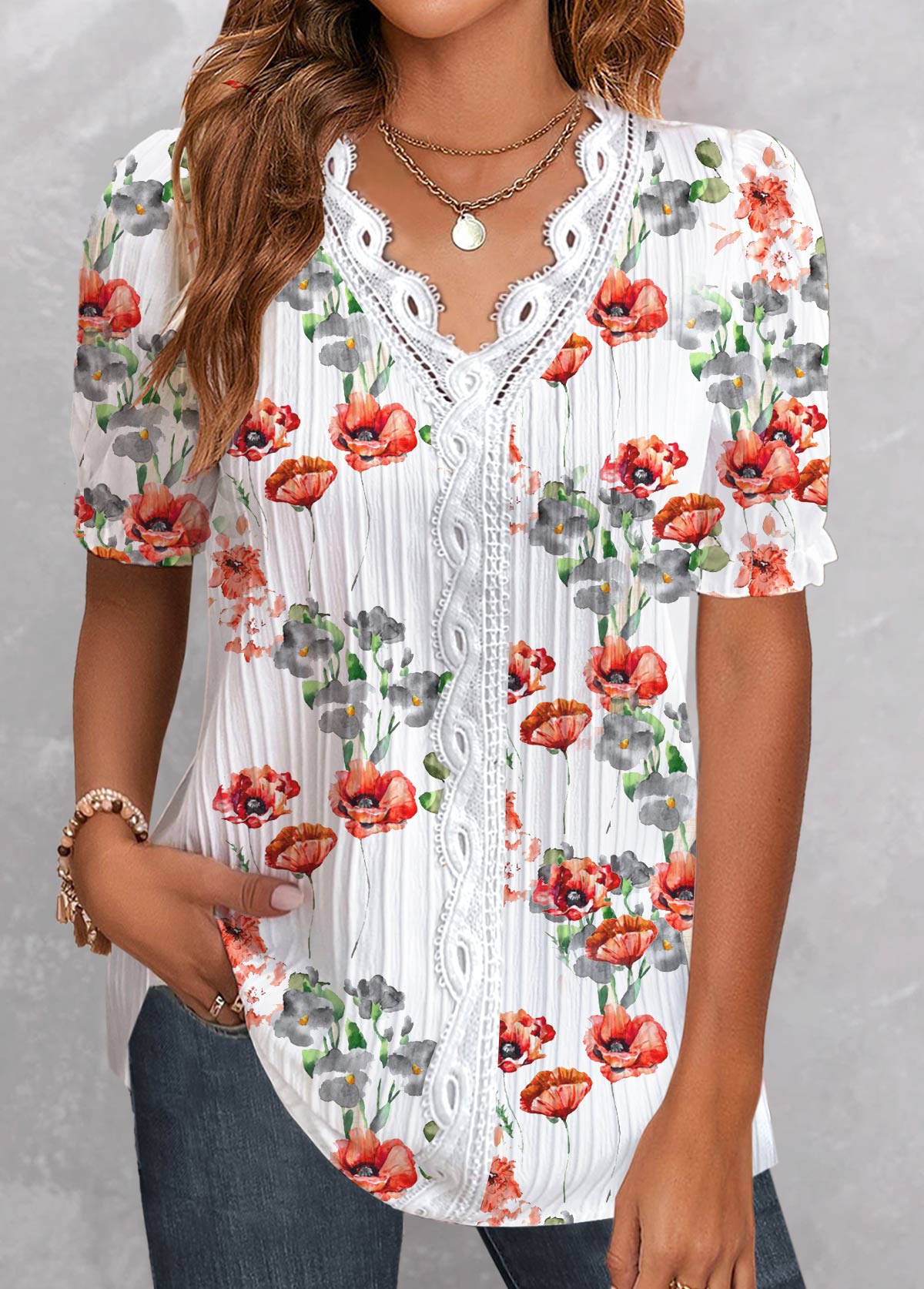 SALE Floral Print Patchwork White Short Sleeve T Shirt Rosewe®