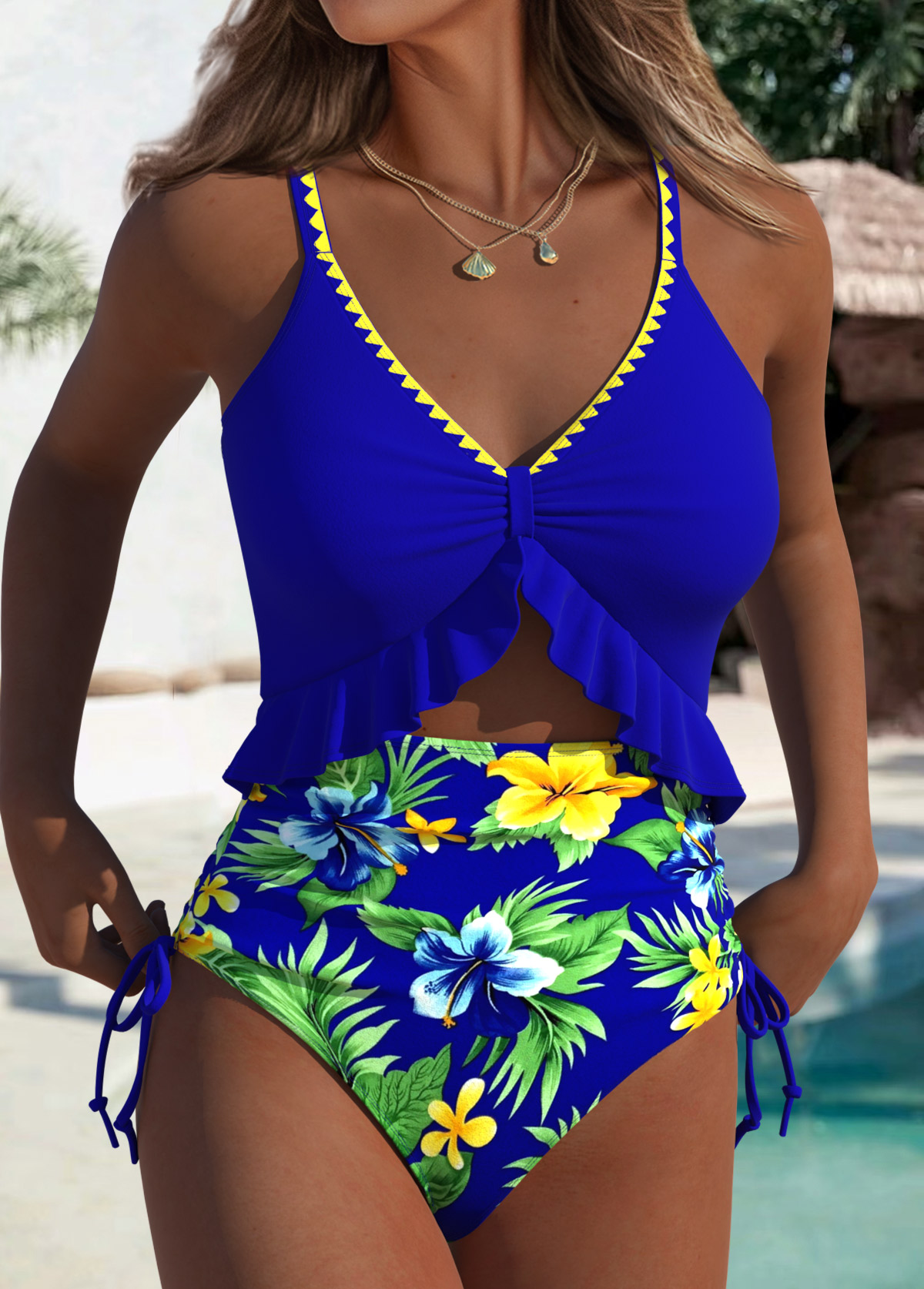 Floral Print Royal Blue One Piece Swimwear Rosewe®