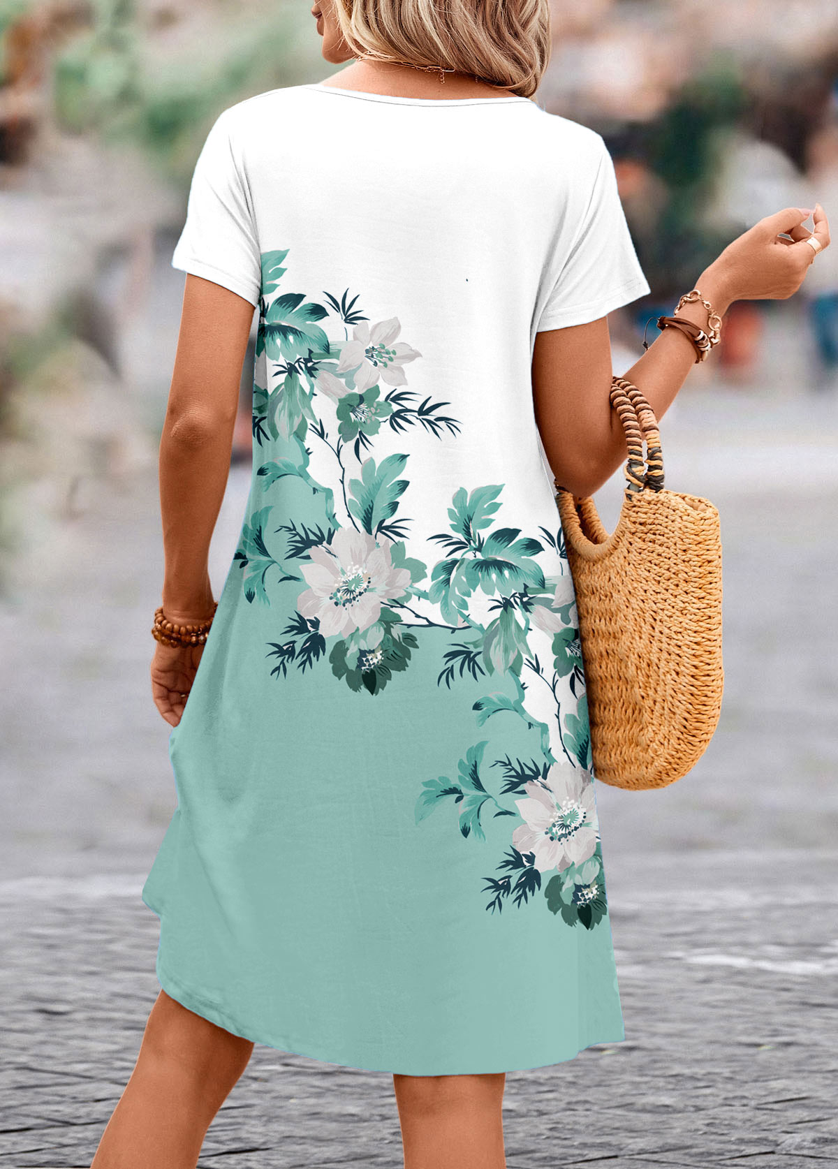 • Floral Print Scalloped Hem Sage Green A Line Dress