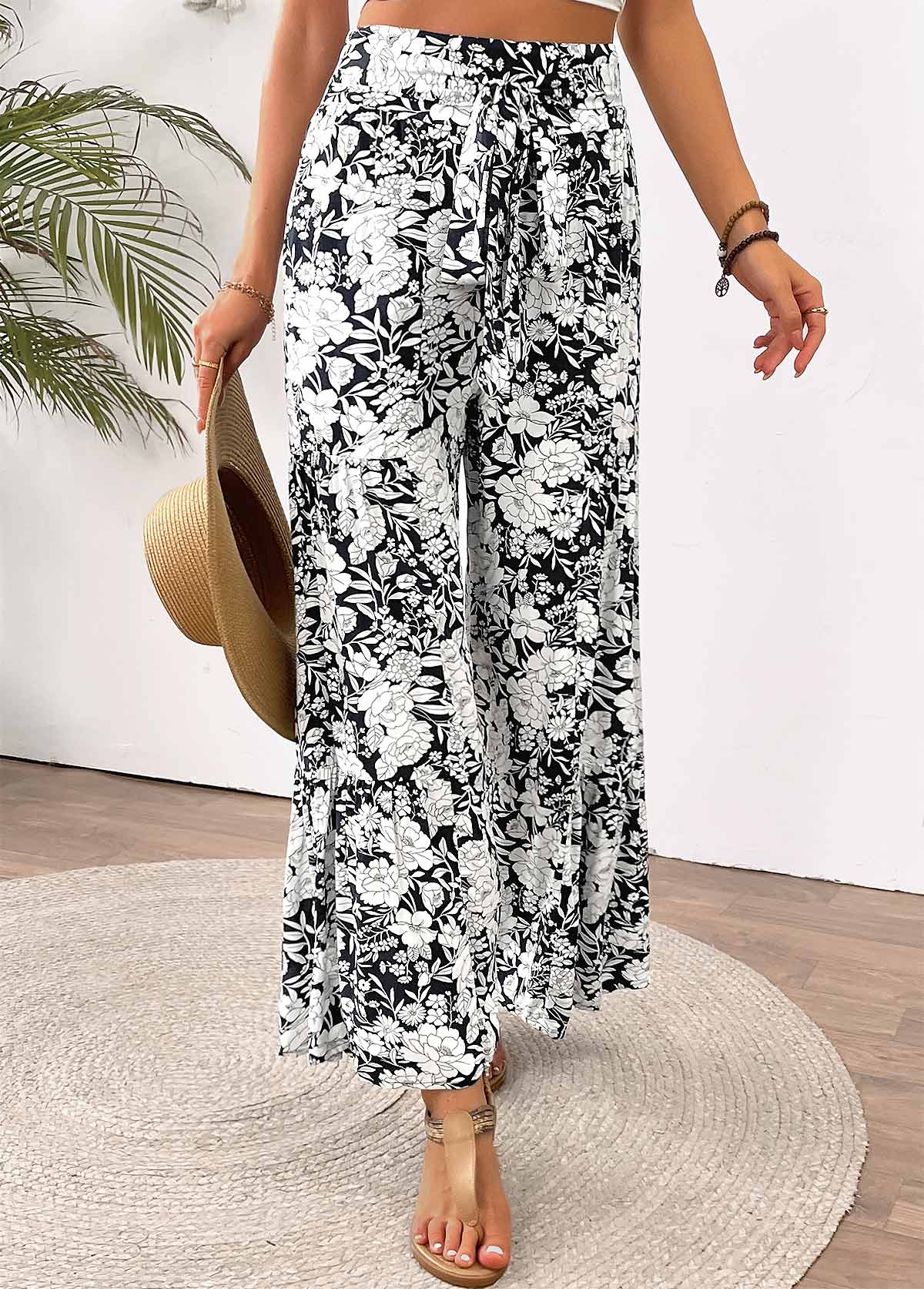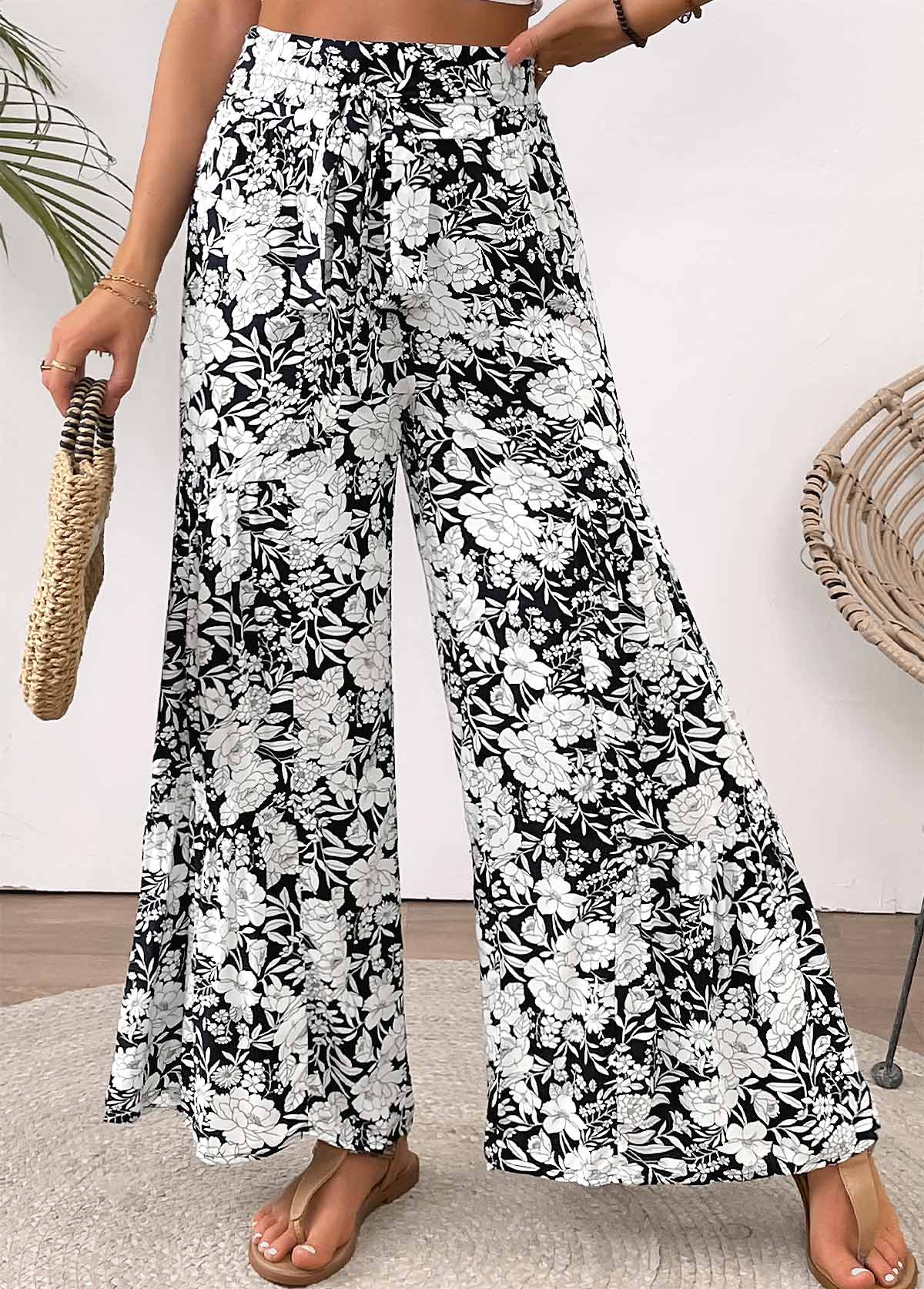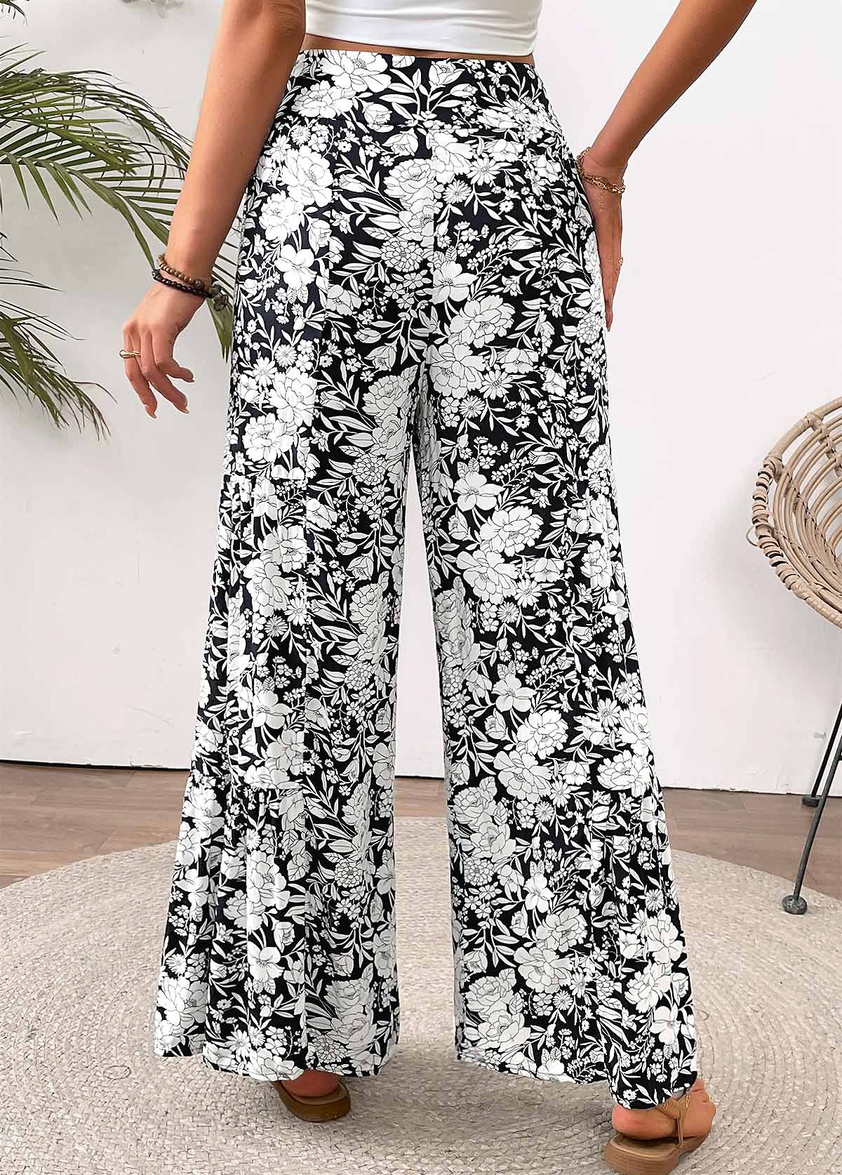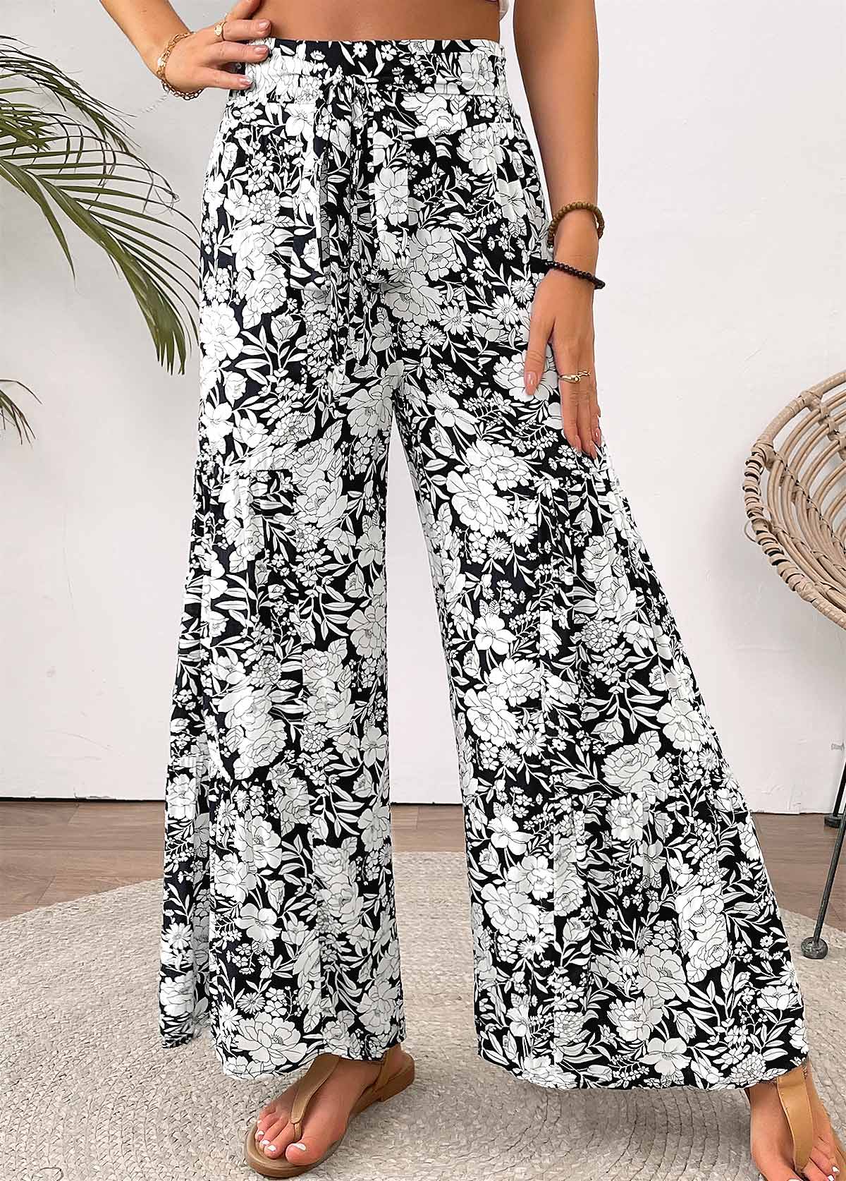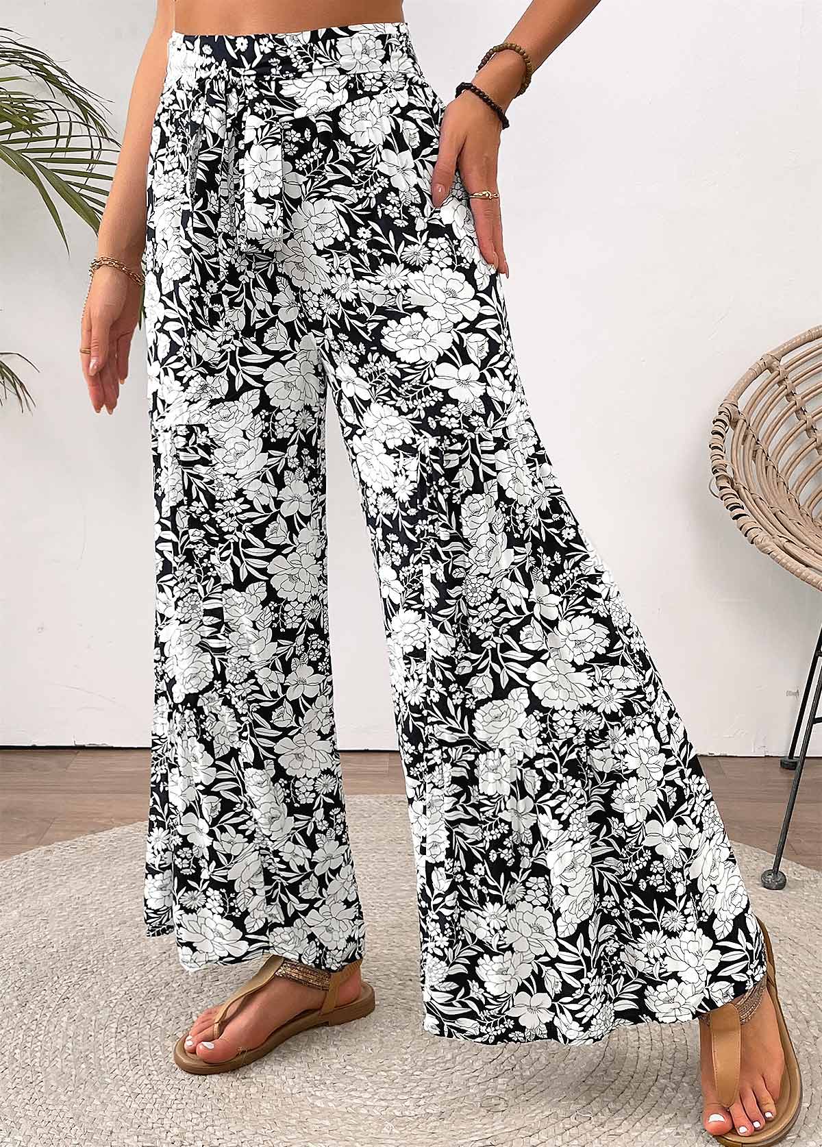 SALE Floral Print White Wide Leg Elastic Waist Pants Rosewe®