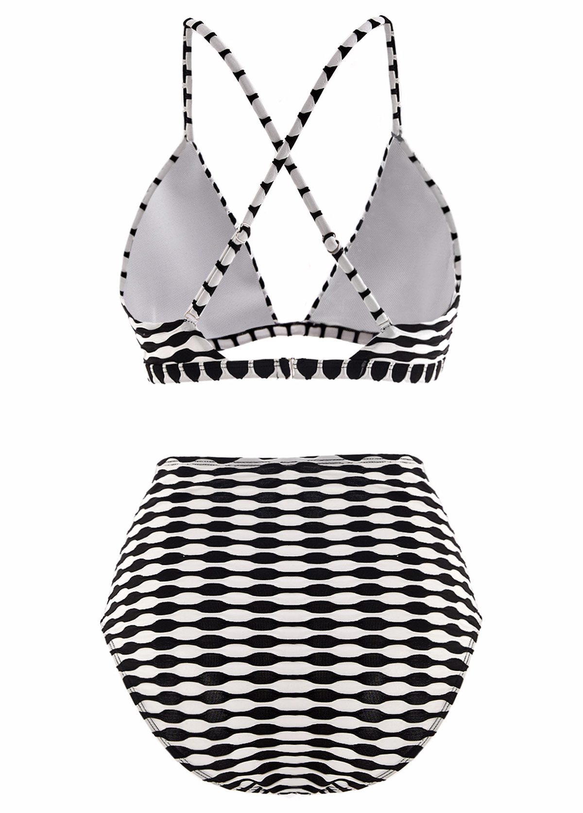 SALE High Waisted Geometric Print Three-piece Black Bikini Set Rosewe®