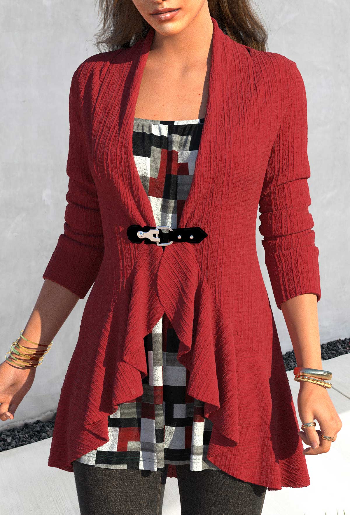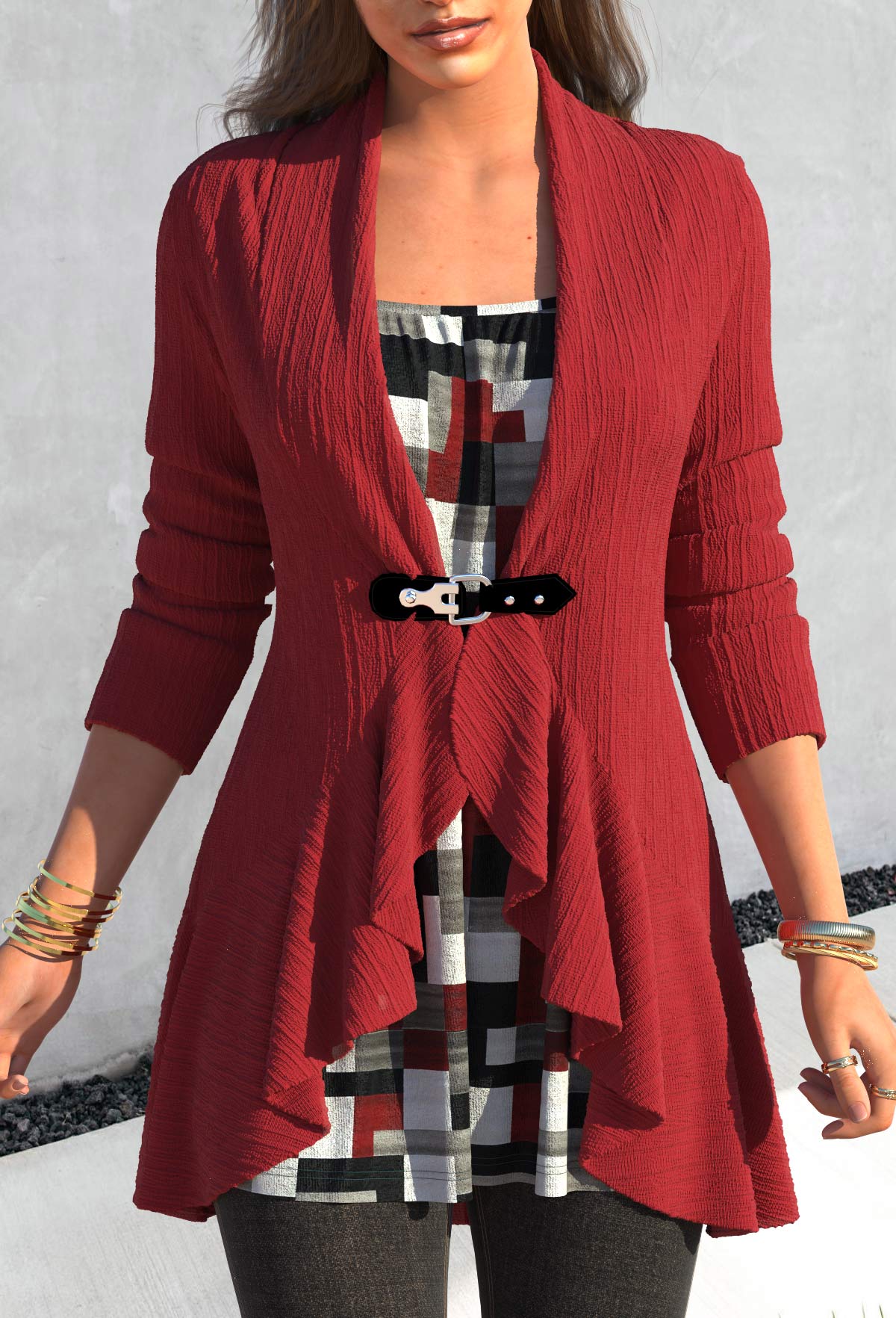 SALE Geometric Print Fake 2in1 Wine Red T Shirt Rosewe®