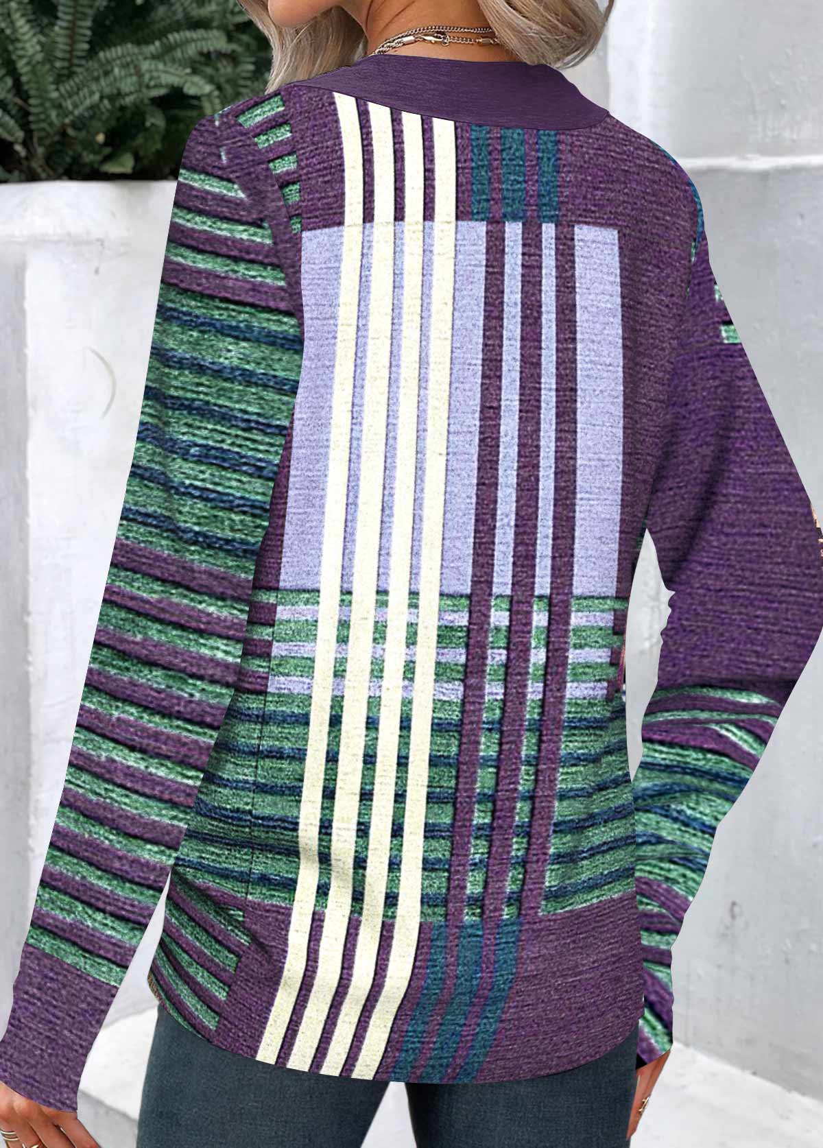 SALE Geometric Print Patchwork Long Sleeve Asymmetrical Neck T Shirt Rosewe®