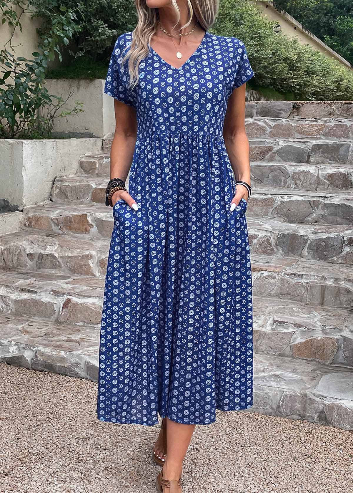 SALE Geometric Print Pocket Dark Blue A Line Dress Rosewe®