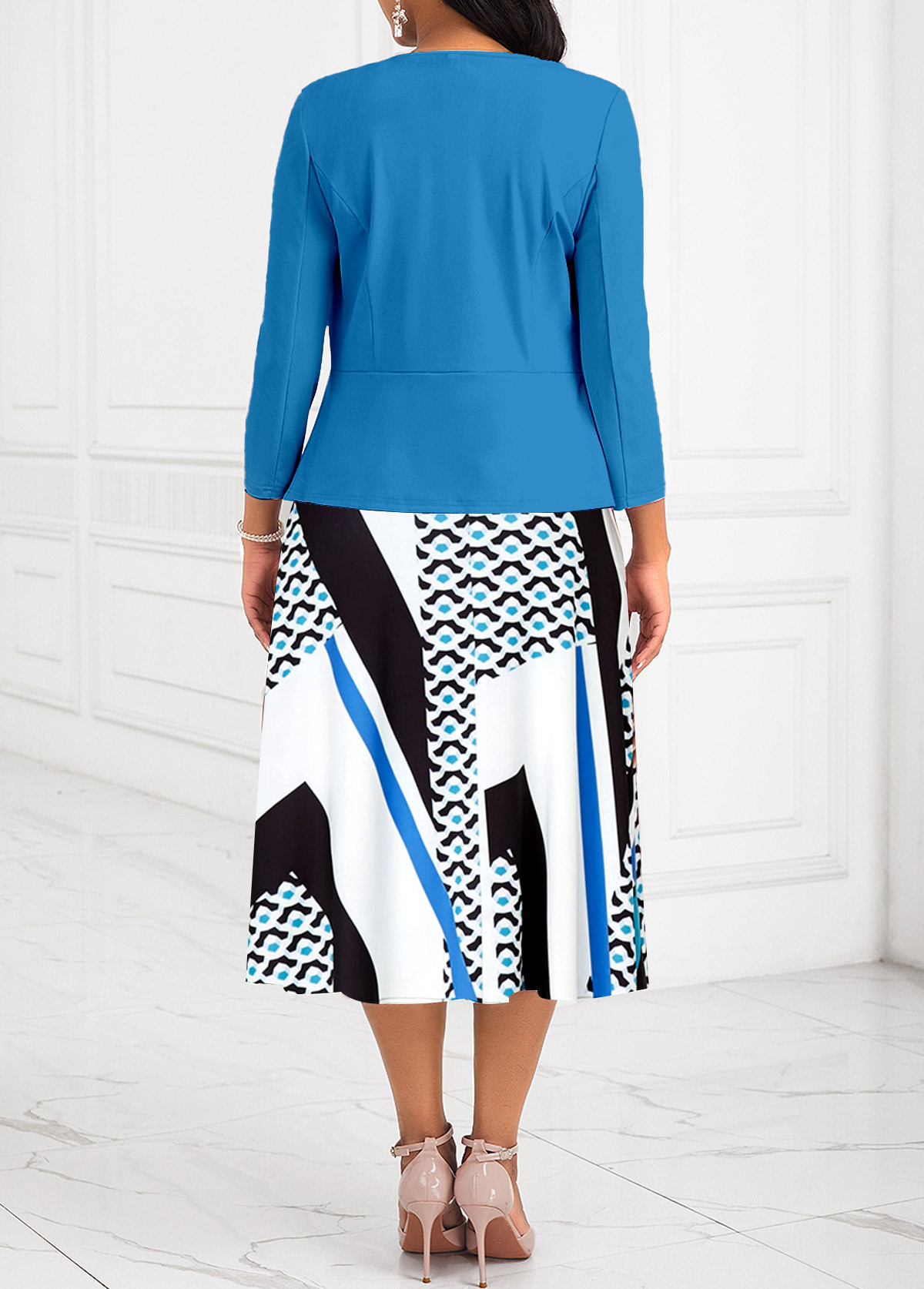 SALE Geometric Print Two Piece Blue V Neck Dress Rosewe®