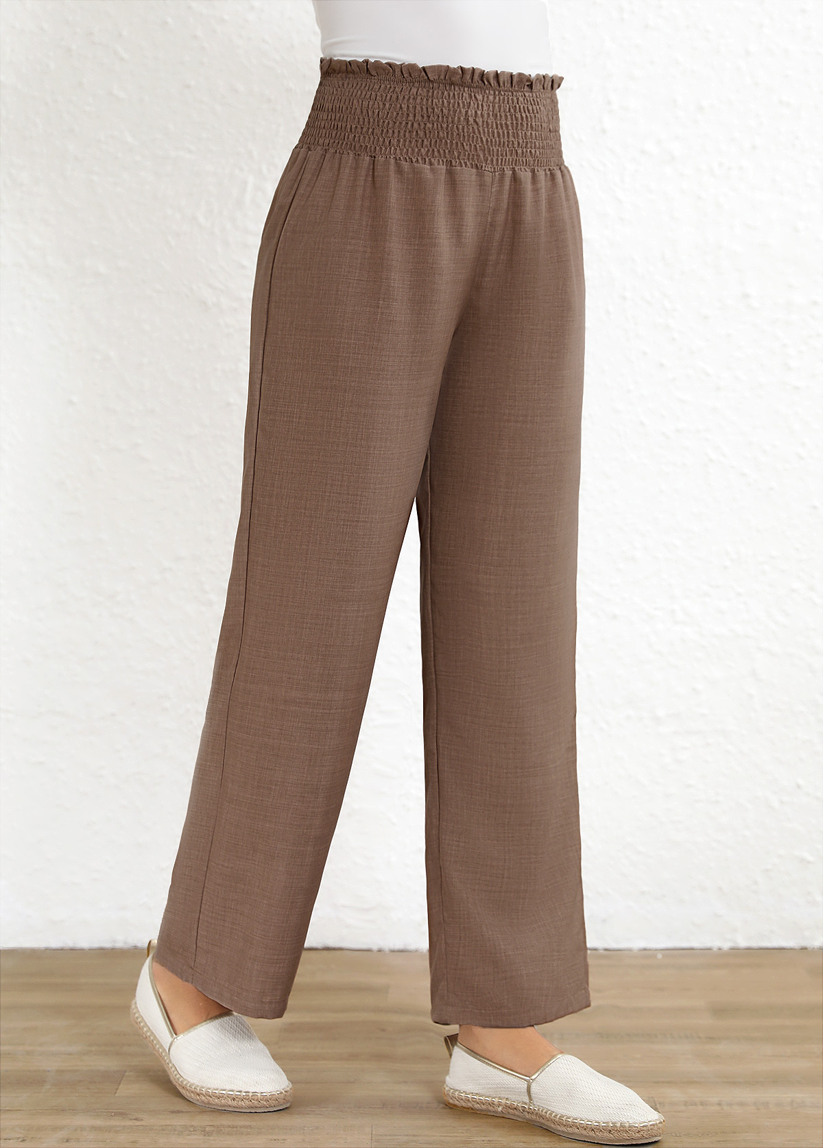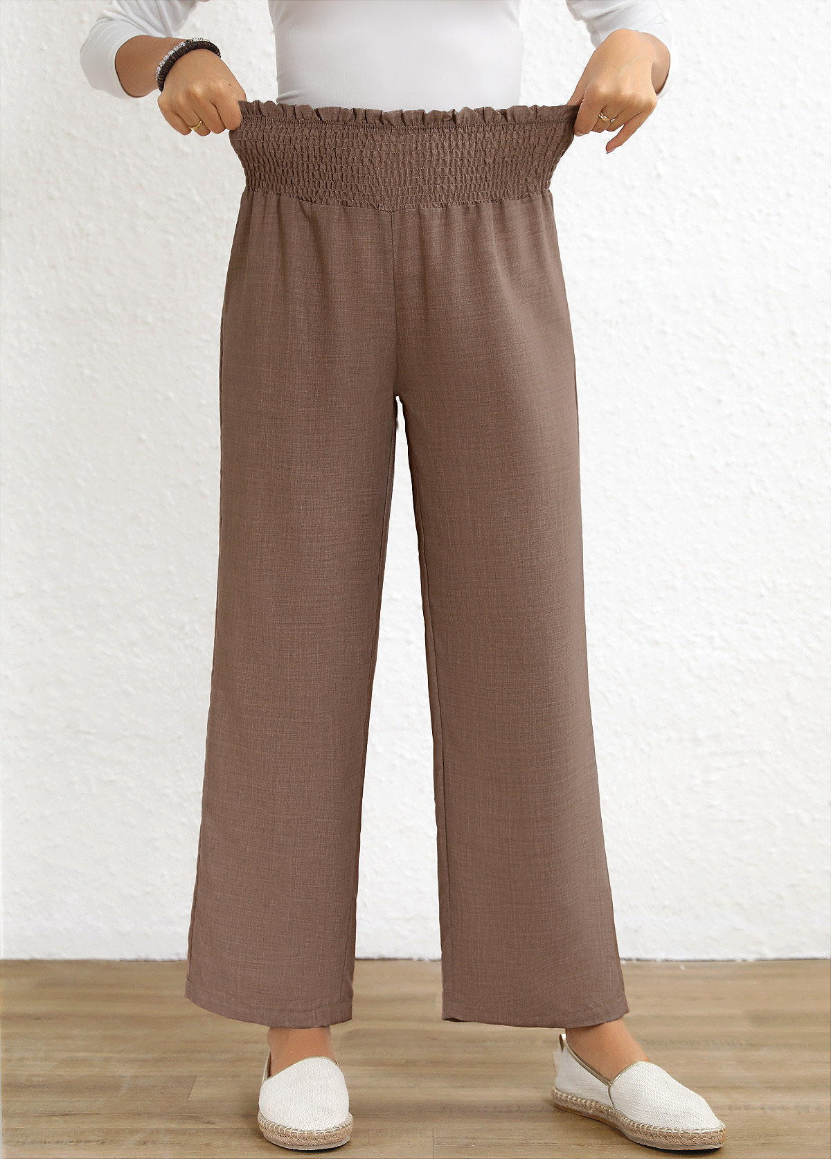 SALE Gray Brown Elastic Waist High Waisted Smocked Pants Rosewe®