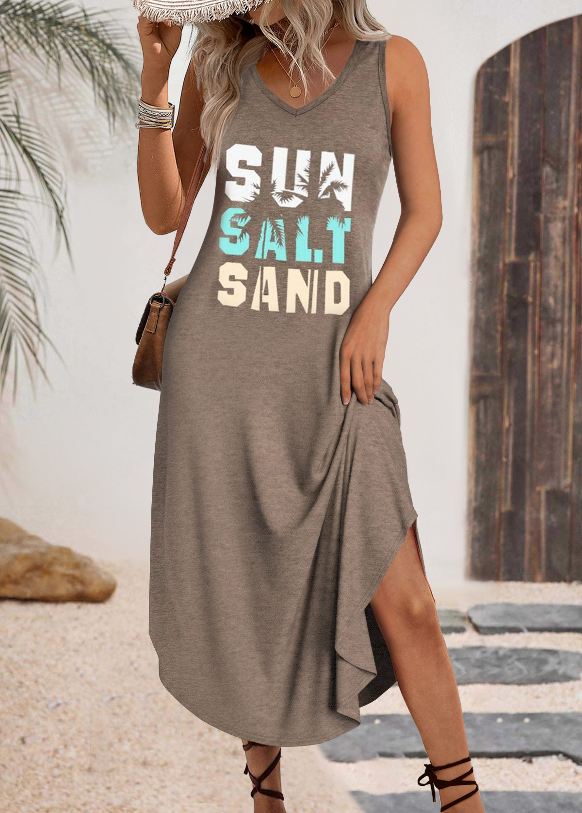 Gray Brown Maxi A Line Sleeveless Dress Rosewe®