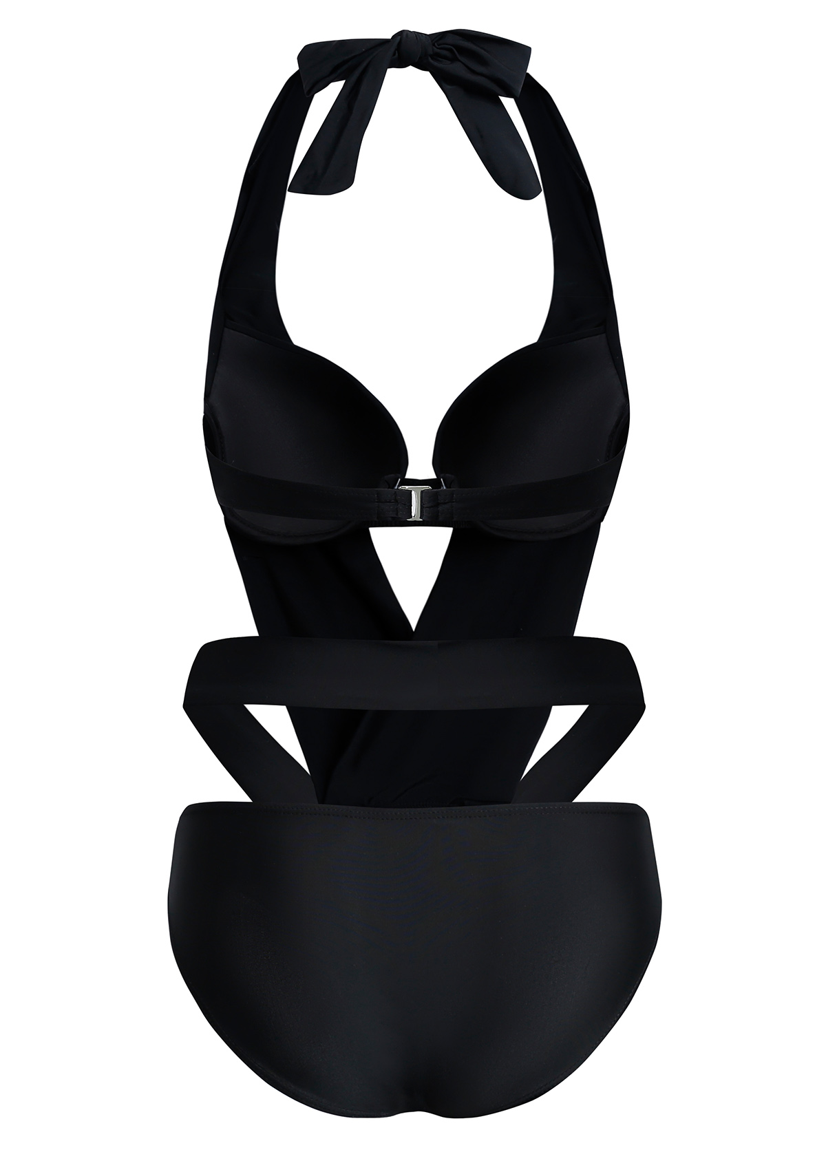 SALE Halter Cutout Black Detail One Piece Swimwear Rosewe®