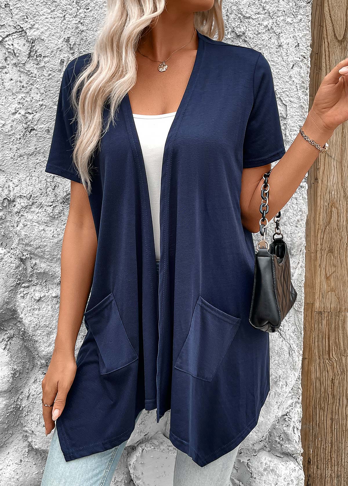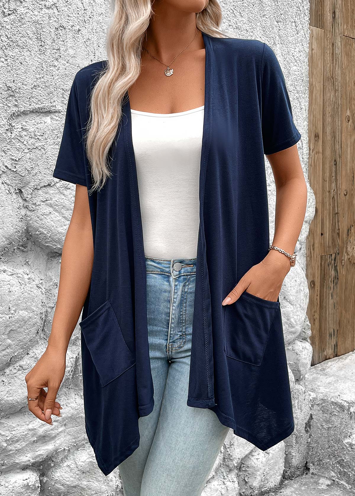 SALE Handkerchief Hem Navy Short Sleeve Light Cardigan Rosewe®
